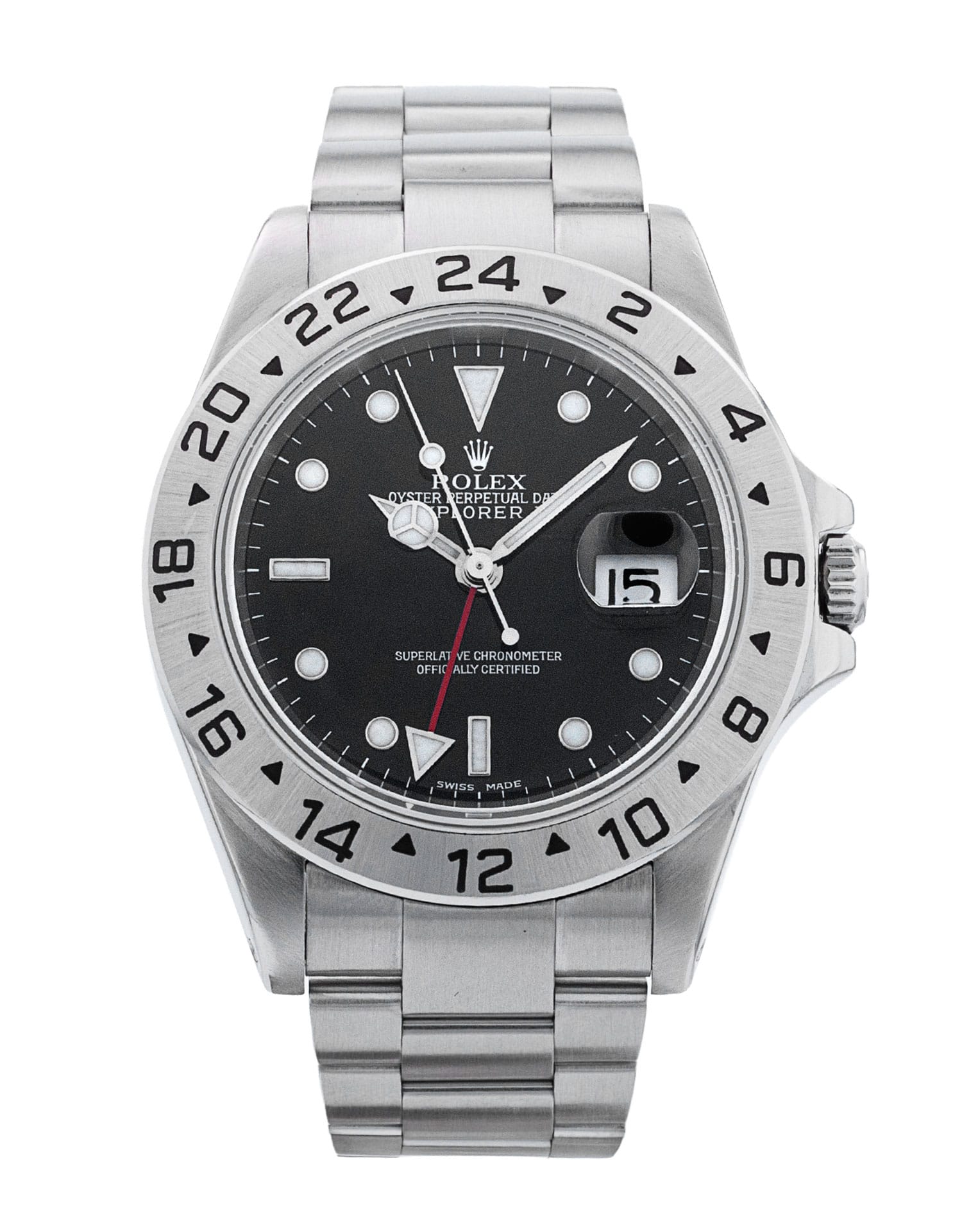This Rolex Explorer II 16570 has a black dial and a bracelet strap. This Rolex has undergone a thorough inspection of water resistance, accuracy, functionality and condition to determine the level of reconditioning required to meet our strict standards. It has also been referenced against technical documents and manufacturer records where available to ensure authenticity and a clean history. All our watches have a 24-month warranty for your peace of mind. One of our skilled polishing technicians has removed marks on the case and bracelet of this watch, brought about by daily wear and tear, which is why this watch does not come with the remaining manufacturer’s warranty.