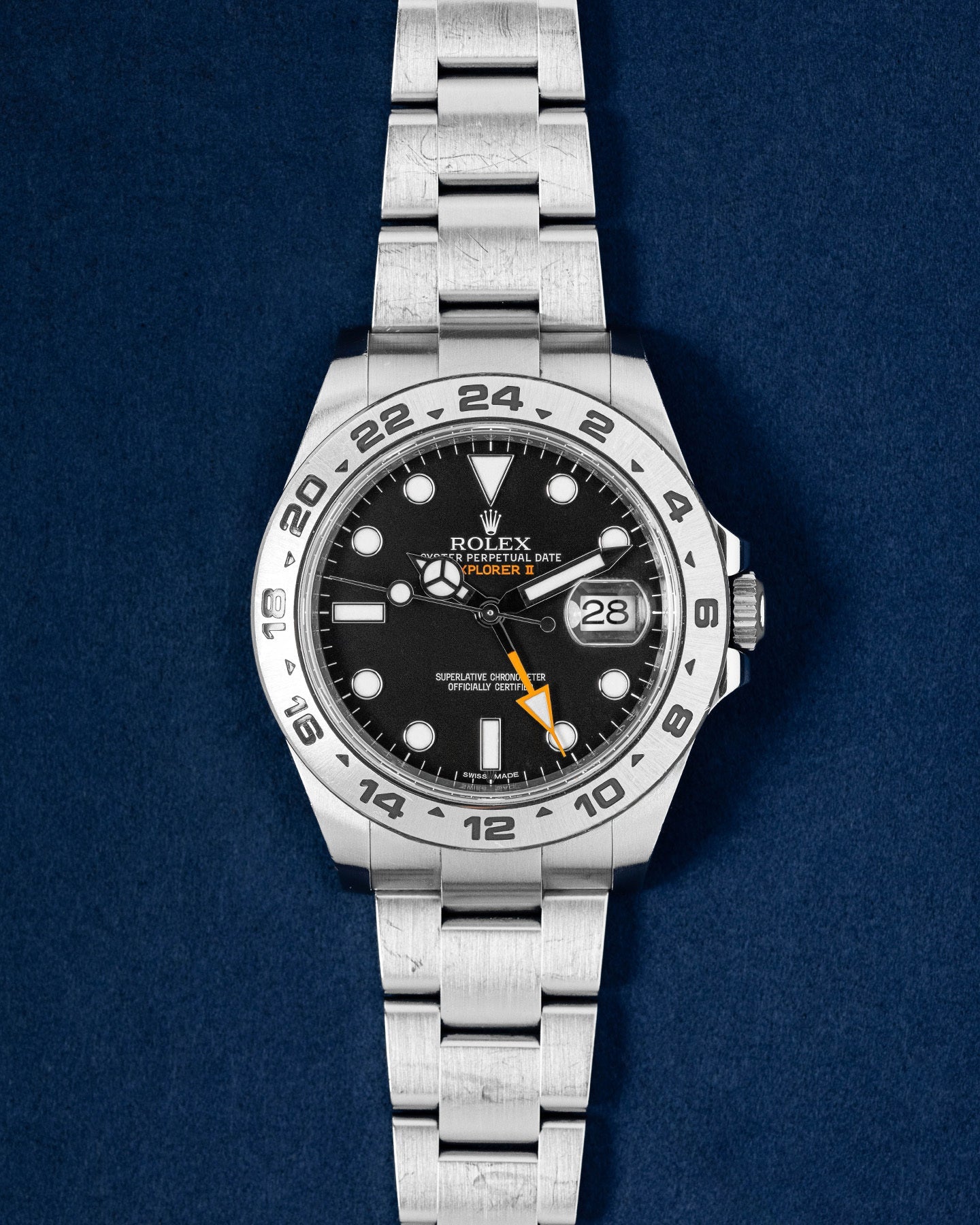 Originally designed in 1971 for the admittedly niche market of cave explorers, the Rolex Explorer II was later updated to fit the aesthetic codes of the brand's other sports watch families. The watch builds on the heritage of the legendary Explorer I, which has always been a firm favourite among enthusiasts—the watch was first established in the public mind after its pioneering ascent of Everest during the expedition of Edmund Hillary and Tenzing Norgay. Today the Explorer II deviates in some ways from the original look, but it continues to represent an exceptional, hardy, modernised tool watch with a top-of-the-range in-house movement and a design that does justice to its legacy in both sports and adventure.