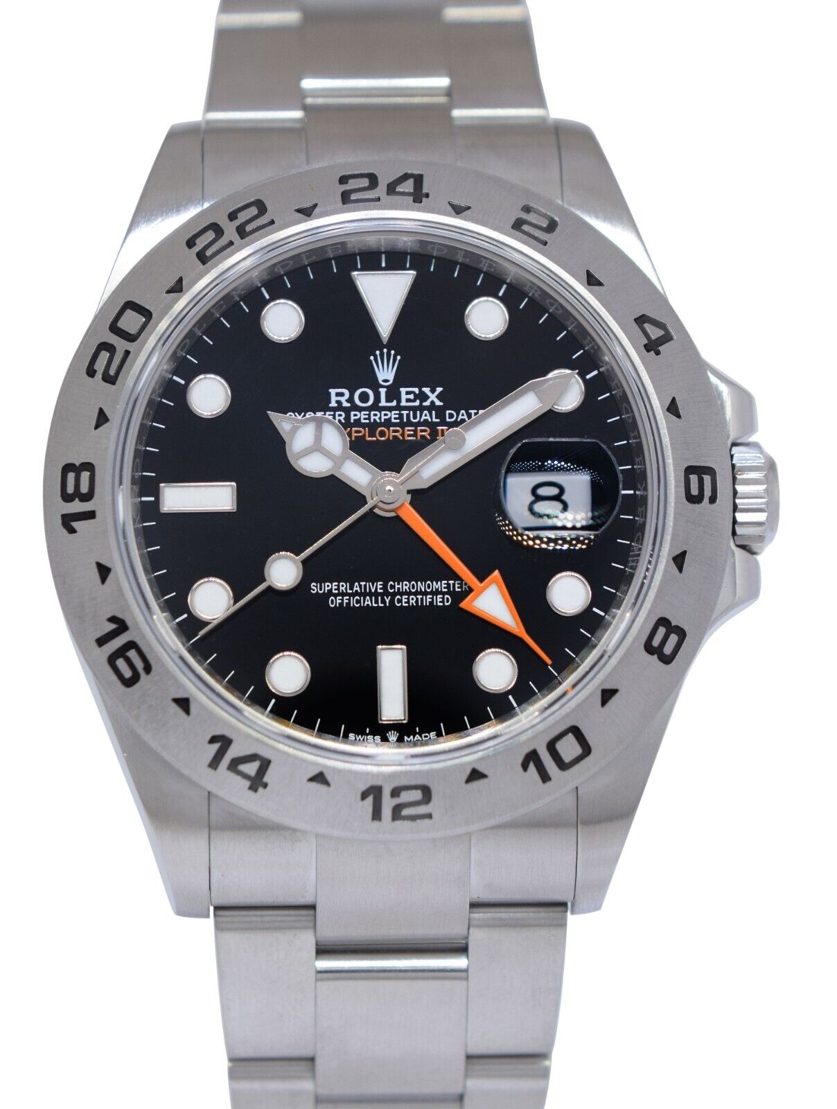 This Rolex Explorer II 226570 has a black dial and a bracelet strap. This Rolex has undergone a thorough inspection of water resistance, accuracy, functionality and condition to determine the level of reconditioning required to meet our strict standards. It has also been referenced against technical documents and manufacturer records where available to ensure authenticity and a clean history. All our watches have a 24-month warranty for your peace of mind. One of our skilled polishing technicians has removed marks on the case and bracelet of this watch, brought about by daily wear and tear, which is why this watch does not come with the remaining manufacturer’s warranty.