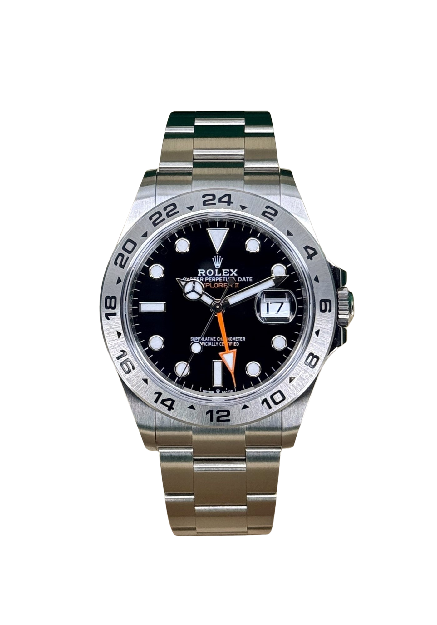 This Rolex Explorer II 226570 has a black dial and a bracelet strap. This Rolex has undergone a thorough inspection of water resistance, accuracy, functionality and condition to determine the level of reconditioning required to meet our strict standards. It has also been referenced against technical documents and manufacturer records where available to ensure authenticity and a clean history. Our watches have a 24-month warranty for your peace of mind, in conjunction with any remaining manufacturer’s warranty from new or from service. To maintain the manufacturer’s warranty on this watch, it has not been polished in our service centre.