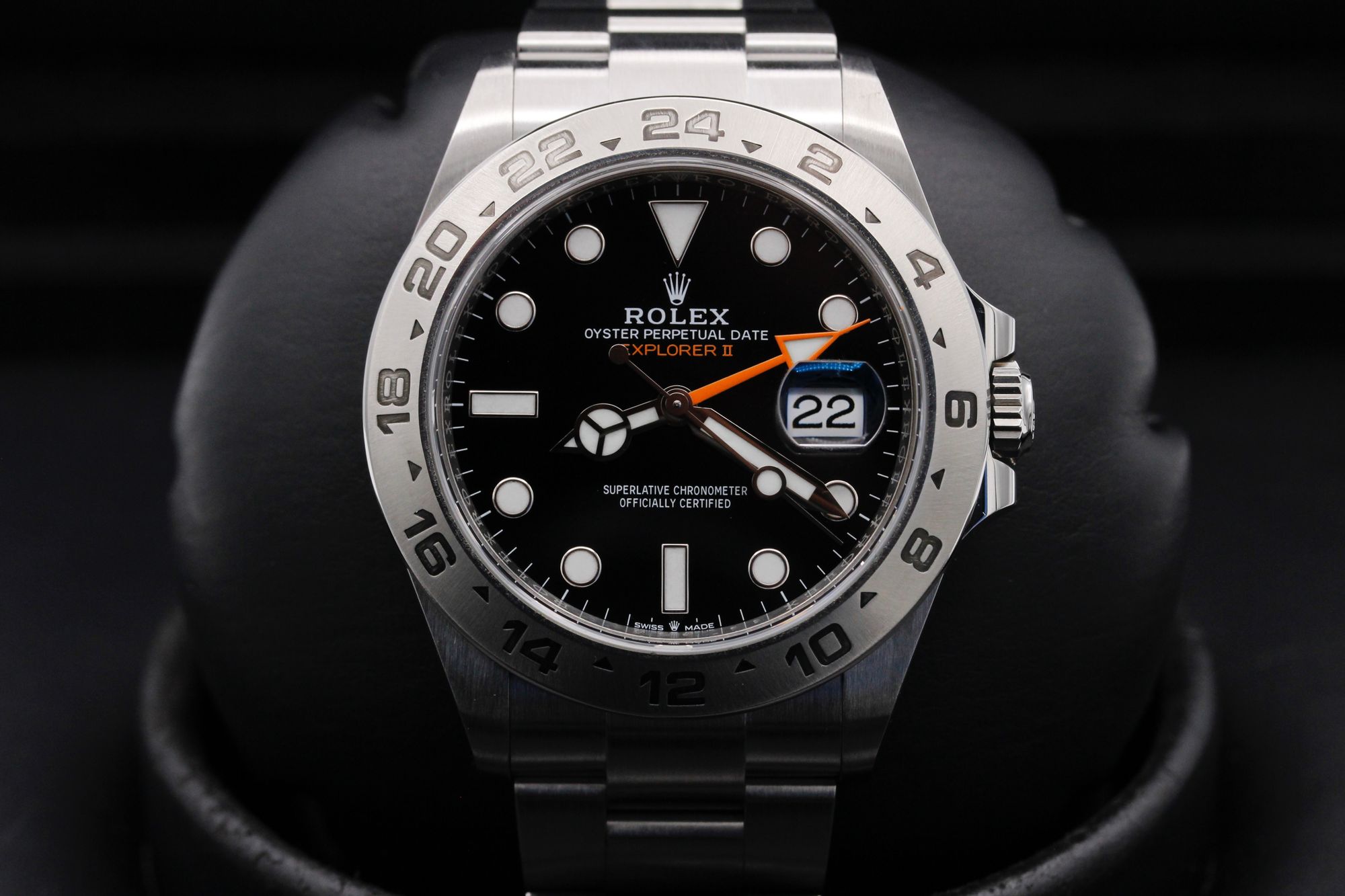 This Rolex Explorer II 226570 has a black dial and a bracelet strap. This Rolex has undergone a thorough inspection of water resistance, accuracy, functionality and condition to determine the level of reconditioning required to meet our strict standards. It has also been referenced against technical documents and manufacturer records where available to ensure authenticity and a clean history. All our watches have a 24-month warranty for your peace of mind. One of our skilled polishing technicians has removed marks on the case and bracelet of this watch, brought about by daily wear and tear, which is why this watch does not come with the remaining manufacturer’s warranty.