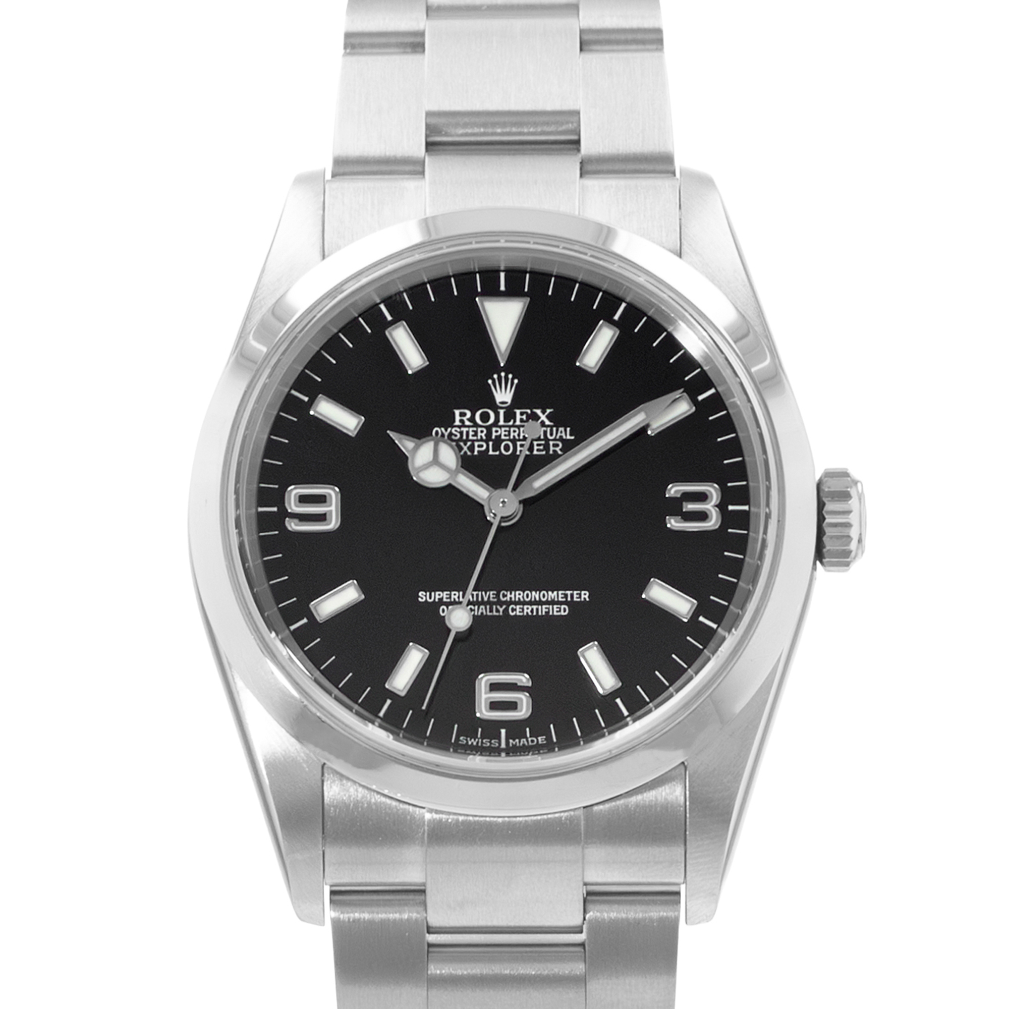 This Rolex Explorer 114270 has a black quarter arabic dial and a bracelet strap. This Rolex has undergone a thorough inspection of water resistance, accuracy, functionality and condition to determine the level of reconditioning required to meet our strict standards. It has also been referenced against technical documents and manufacturer records where available to ensure authenticity and a clean history. All our watches have a 24-month warranty for your peace of mind. One of our skilled polishing technicians has removed marks on the case and bracelet of this watch, brought about by daily wear and tear, which is why this watch does not come with the remaining manufacturer’s warranty.