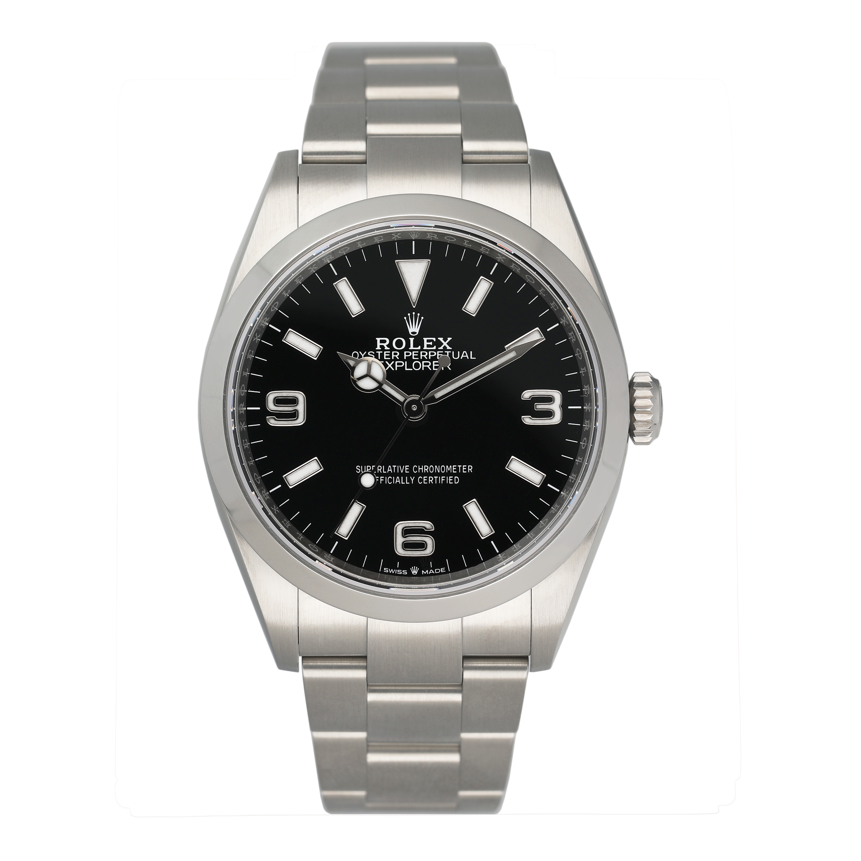 This Rolex Explorer 124270 has a black quarter arabic dial and a bracelet strap. This Rolex has undergone a thorough inspection of water resistance, accuracy, functionality and condition to determine the level of reconditioning required to meet our strict standards. It has also been referenced against technical documents and manufacturer records where available to ensure authenticity and a clean history. All our watches have a 24-month warranty for your peace of mind. One of our skilled polishing technicians has removed marks on the case and bracelet of this watch, brought about by daily wear and tear, which is why this watch does not come with the remaining manufacturer’s warranty.