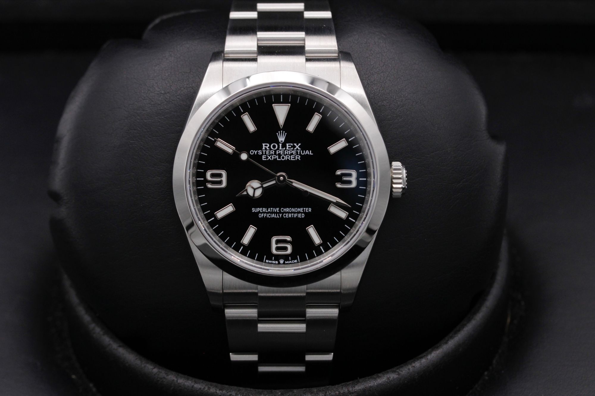 This Rolex Explorer 124270 has a black quarter arabic dial and a bracelet strap. This Rolex has undergone a thorough inspection of water resistance, accuracy, functionality and condition to determine the level of reconditioning required to meet our strict standards. It has also been referenced against technical documents and manufacturer records where available to ensure authenticity and a clean history. Our watches have a 24-month warranty for your peace of mind, in conjunction with any remaining manufacturer’s warranty from new or from service. To maintain the manufacturer’s warranty on this watch, it has not been polished in our service centre.