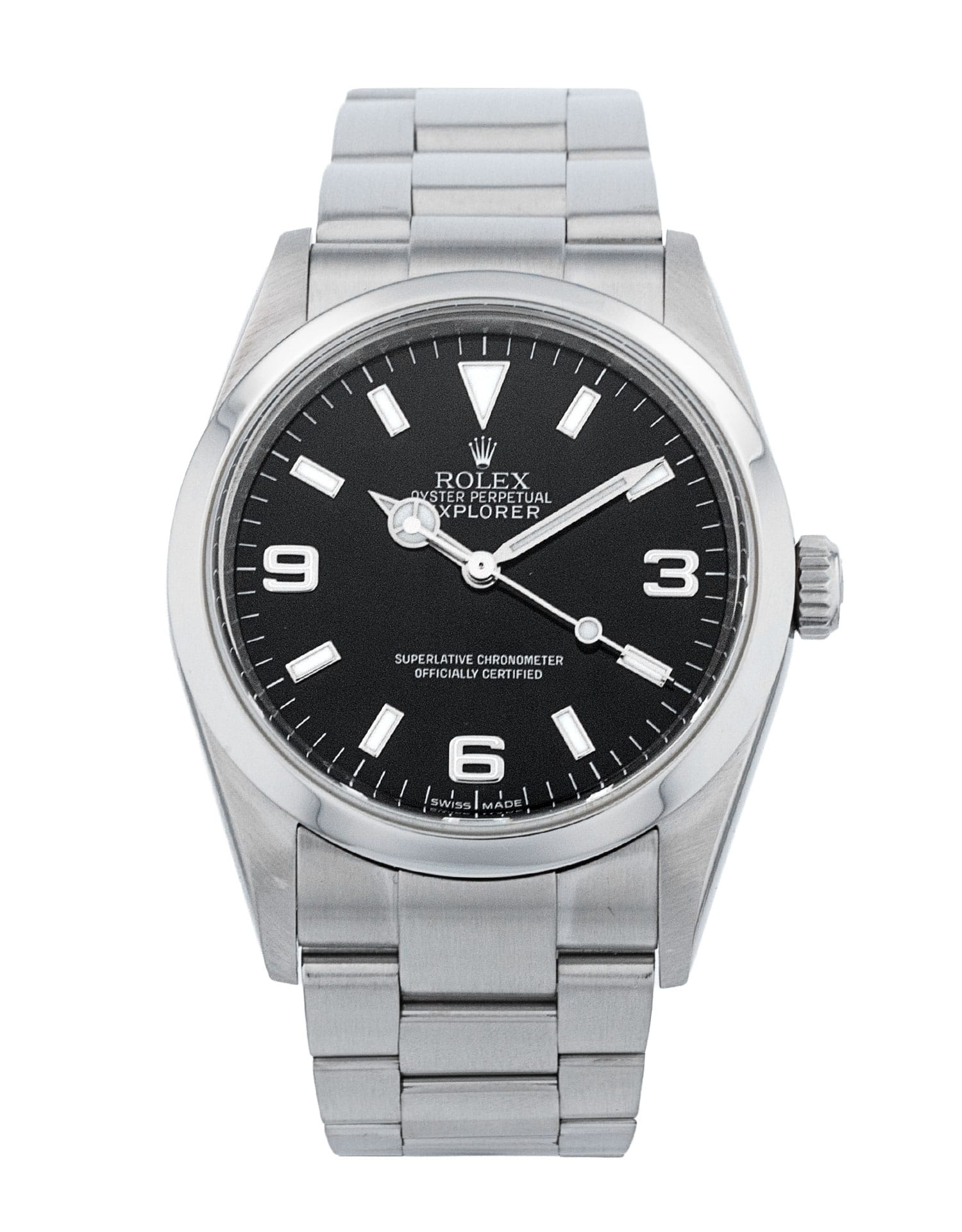 This Rolex Explorer 14270 has a black quarter arabic dial and a bracelet strap. This Rolex has undergone a thorough inspection of water resistance, accuracy, functionality and condition to determine the level of reconditioning required to meet our strict standards. It has also been referenced against technical documents and manufacturer records where available to ensure authenticity and a clean history. All our watches have a 24-month warranty for your peace of mind. One of our skilled polishing technicians has removed marks on the case and bracelet of this watch, brought about by daily wear and tear, which is why this watch does not come with the remaining manufacturer’s warranty.