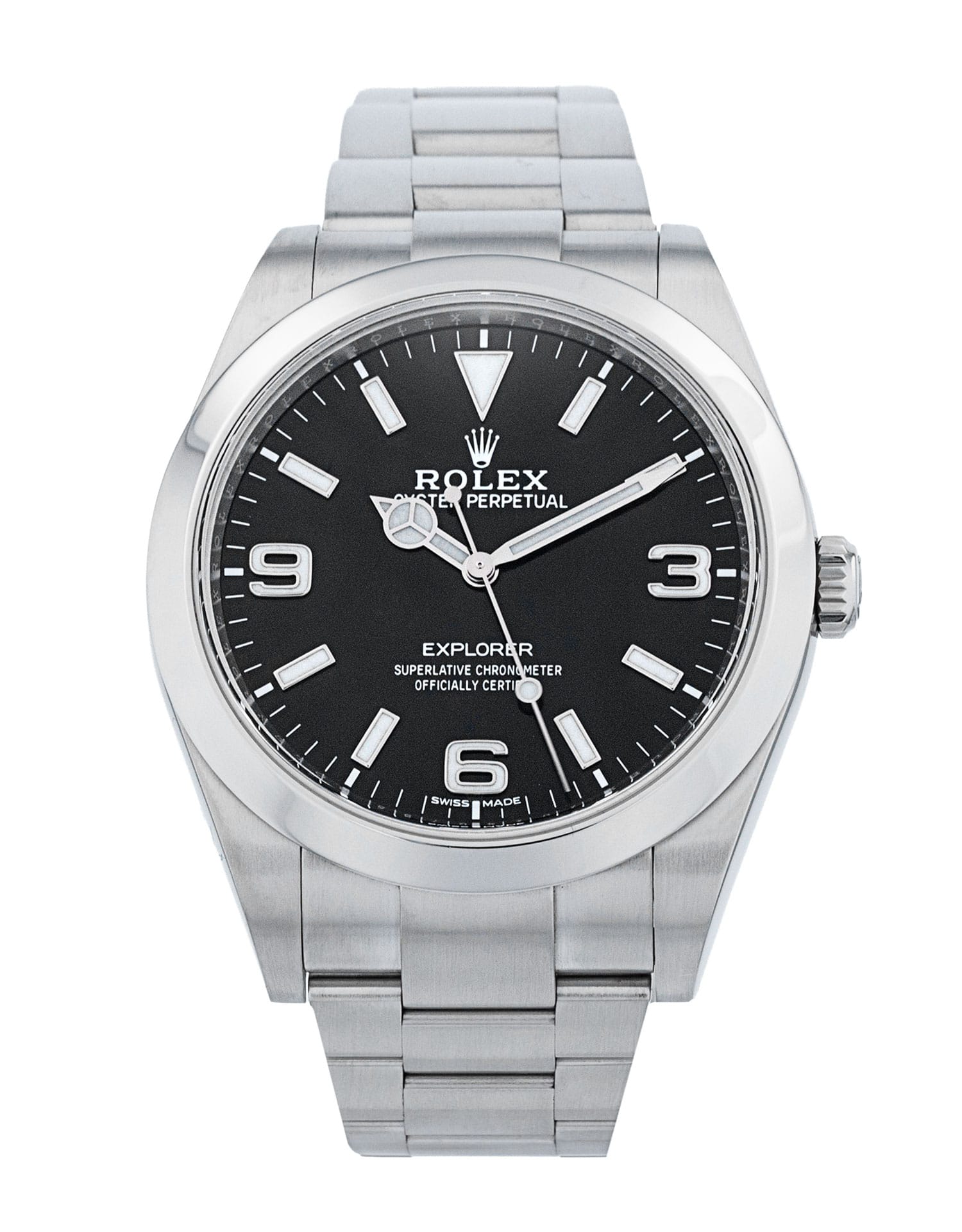 This Rolex Explorer 214270 has a black quarter arabic dial and a bracelet strap. This Rolex has undergone a thorough inspection of water resistance, accuracy, functionality and condition to determine the level of reconditioning required to meet our strict standards. It has also been referenced against technical documents and manufacturer records where available to ensure authenticity and a clean history. All our watches have a 24-month warranty for your peace of mind. One of our skilled polishing technicians has removed marks on the case and bracelet of this watch, brought about by daily wear and tear, which is why this watch does not come with the remaining manufacturer’s warranty.