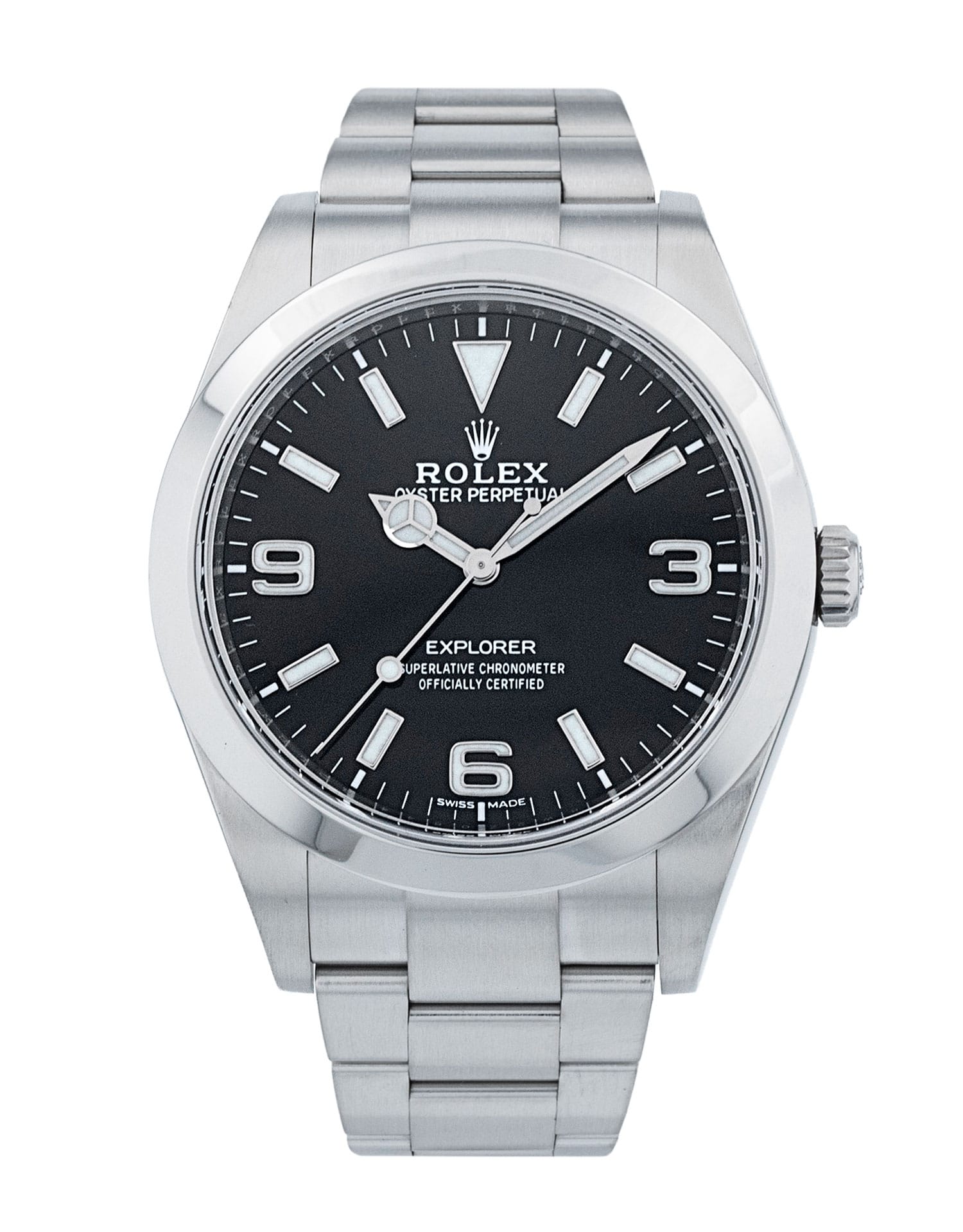 This Rolex Explorer 214270 has a black quarter arabic dial and a bracelet strap. This Rolex has undergone a thorough inspection of water resistance, accuracy, functionality and condition to determine the level of reconditioning required to meet our strict standards. It has also been referenced against technical documents and manufacturer records where available to ensure authenticity and a clean history. All our watches have a 24-month warranty for your peace of mind. One of our skilled polishing technicians has removed marks on the case and bracelet of this watch, brought about by daily wear and tear, which is why this watch does not come with the remaining manufacturer’s warranty.
