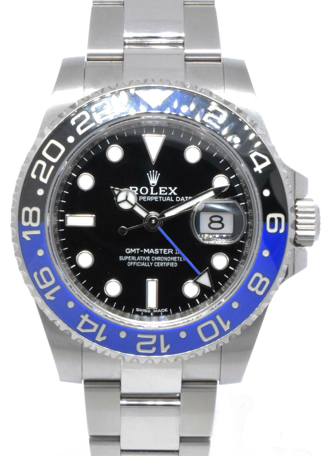This Rolex GMT Master II 116710 BLNR has a black dial and a bracelet strap. This Rolex has undergone a thorough inspection of water resistance, accuracy, functionality and condition to determine the level of reconditioning required to meet our strict standards. It has also been referenced against technical documents and manufacturer records where available to ensure authenticity and a clean history. All our watches have a 24-month warranty for your peace of mind. One of our skilled polishing technicians has removed marks on the case and bracelet of this watch, brought about by daily wear and tear, which is why this watch does not come with the remaining manufacturer’s warranty.
