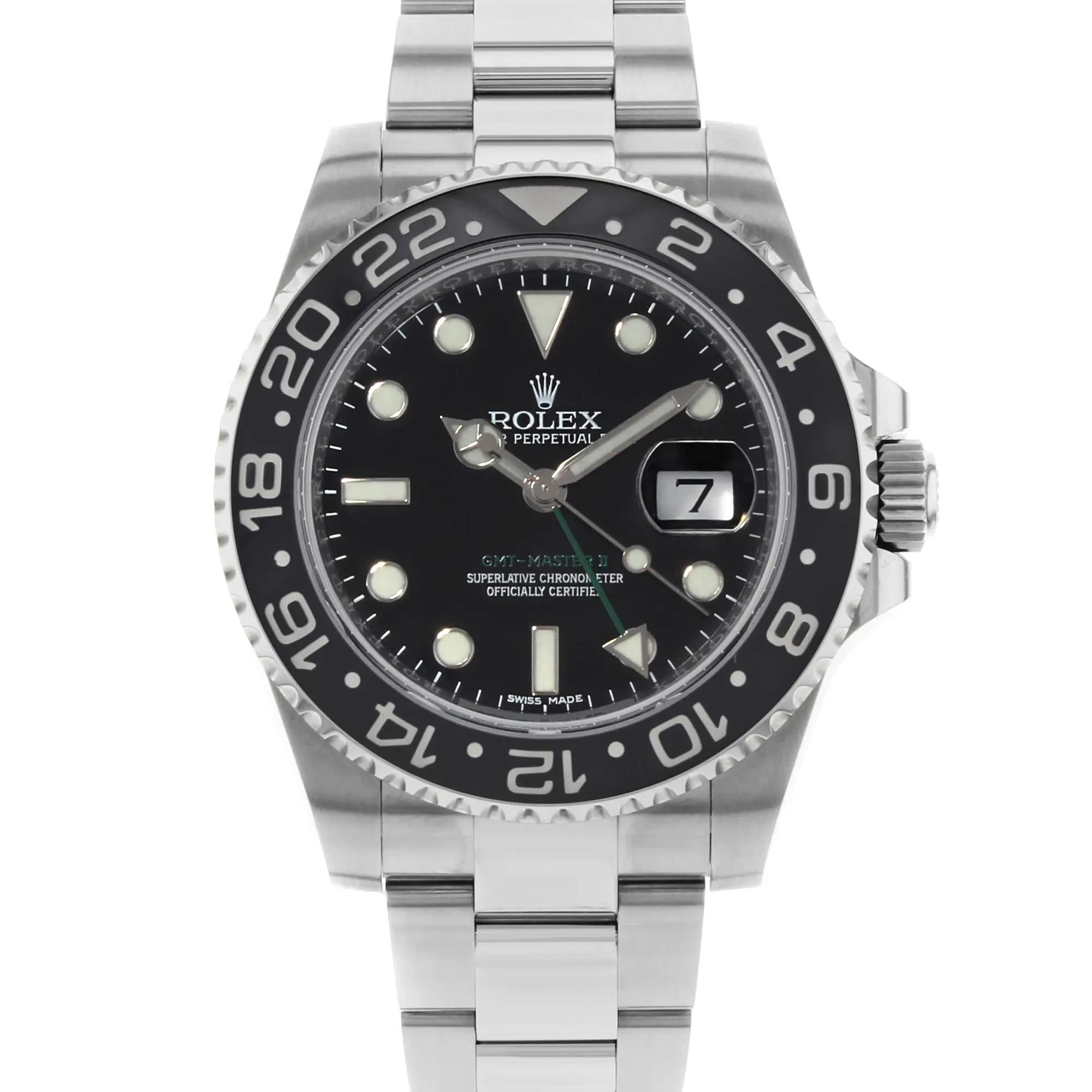 This Rolex GMT Master II 116710 LN has a black dial and a bracelet strap. This Rolex has undergone a thorough inspection of water resistance, accuracy, functionality and condition to determine the level of reconditioning required to meet our strict standards. It has also been referenced against technical documents and manufacturer records where available to ensure authenticity and a clean history. All our watches have a 24-month warranty for your peace of mind. One of our skilled polishing technicians has removed marks on the case and bracelet of this watch, brought about by daily wear and tear, which is why this watch does not come with the remaining manufacturer’s warranty.