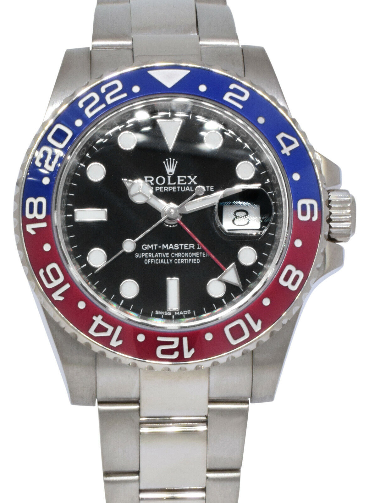 This Rolex GMT Master II 116719 BLRO has a black dial and a bracelet strap. This Rolex has undergone a thorough inspection of water resistance, accuracy, functionality and condition to determine the level of reconditioning required to meet our strict standards. It has also been referenced against technical documents and manufacturer records where available to ensure authenticity and a clean history. All our watches have a 24-month warranty for your peace of mind. One of our skilled polishing technicians has removed marks on the case and bracelet of this watch, brought about by daily wear and tear, which is why this watch does not come with the remaining manufacturer’s warranty.