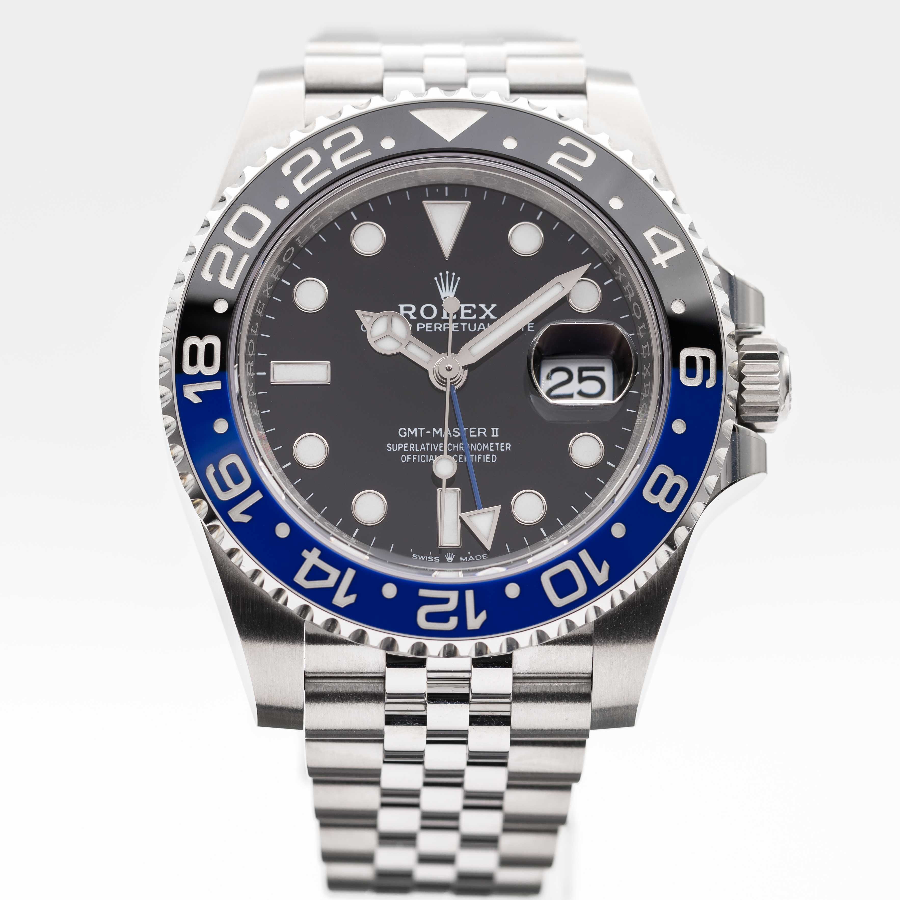 This Rolex GMT Master II 126710 BLNR has a black dial and a bracelet strap. This Rolex has undergone a thorough inspection of water resistance, accuracy, functionality and condition to determine the level of reconditioning required to meet our strict standards. It has also been referenced against technical documents and manufacturer records where available to ensure authenticity and a clean history. Our watches have a 24-month warranty for your peace of mind, in conjunction with any remaining manufacturer’s warranty from new or from service. To maintain the manufacturer’s warranty on this watch, it has not been polished in our service centre.