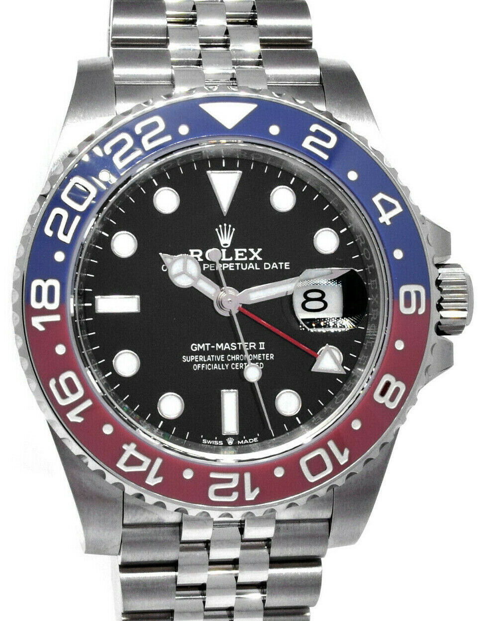 This Rolex GMT Master II 126710 BLRO has a black dial and a bracelet strap. This Rolex has undergone a thorough inspection of water resistance, accuracy, functionality and condition to determine the level of reconditioning required to meet our strict standards. It has also been referenced against technical documents and manufacturer records where available to ensure authenticity and a clean history. Our watches have a 24-month warranty for your peace of mind, in conjunction with any remaining manufacturer’s warranty from new or from service. To maintain the manufacturer’s warranty on this watch, it has not been polished in our service centre.