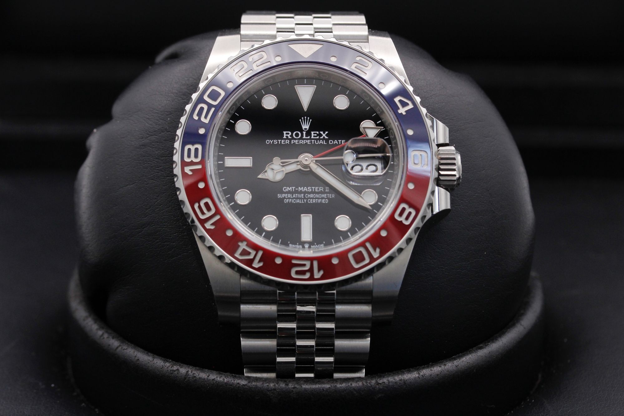 This Rolex GMT Master II 126710 BLRO has a black dial and a bracelet strap. This Rolex has undergone a thorough inspection of water resistance, accuracy, functionality and condition to determine the level of reconditioning required to meet our strict standards. It has also been referenced against technical documents and manufacturer records where available to ensure authenticity and a clean history. Our watches have a 24-month warranty for your peace of mind, in conjunction with any remaining manufacturer’s warranty from new or from service. To maintain the manufacturer’s warranty on this watch, it has not been polished in our service centre.