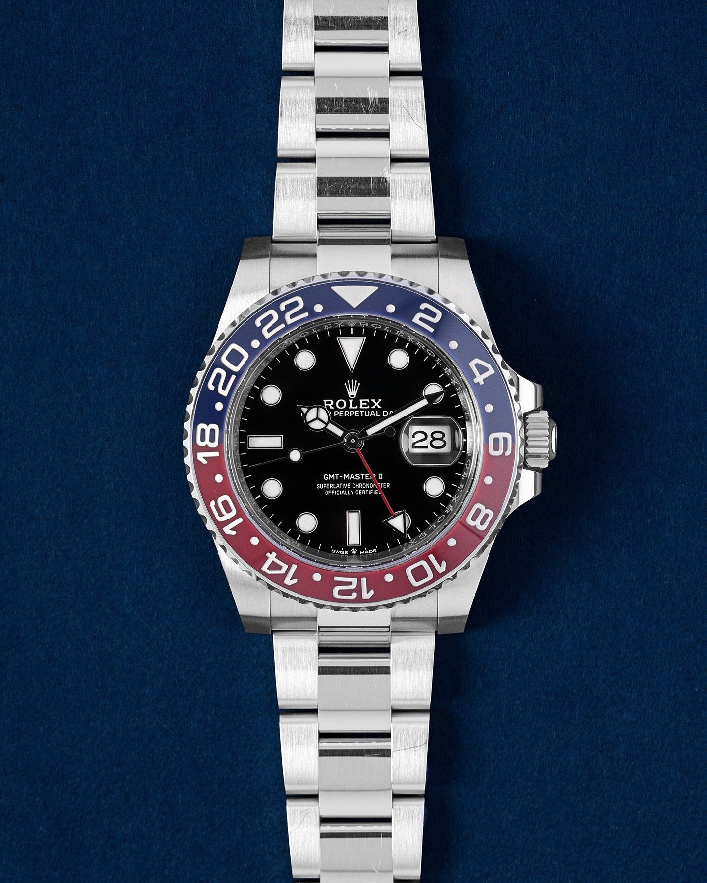 This Rolex GMT Master II 126710 BLRO has a black dial and a bracelet strap. This Rolex has undergone a thorough inspection of water resistance, accuracy, functionality and condition to determine the level of reconditioning required to meet our strict standards. It has also been referenced against technical documents and manufacturer records where available to ensure authenticity and a clean history. Our watches have a 24-month warranty for your peace of mind, in conjunction with any remaining manufacturer’s warranty from new or from service. To maintain the manufacturer’s warranty on this watch, it has not been polished in our service centre.