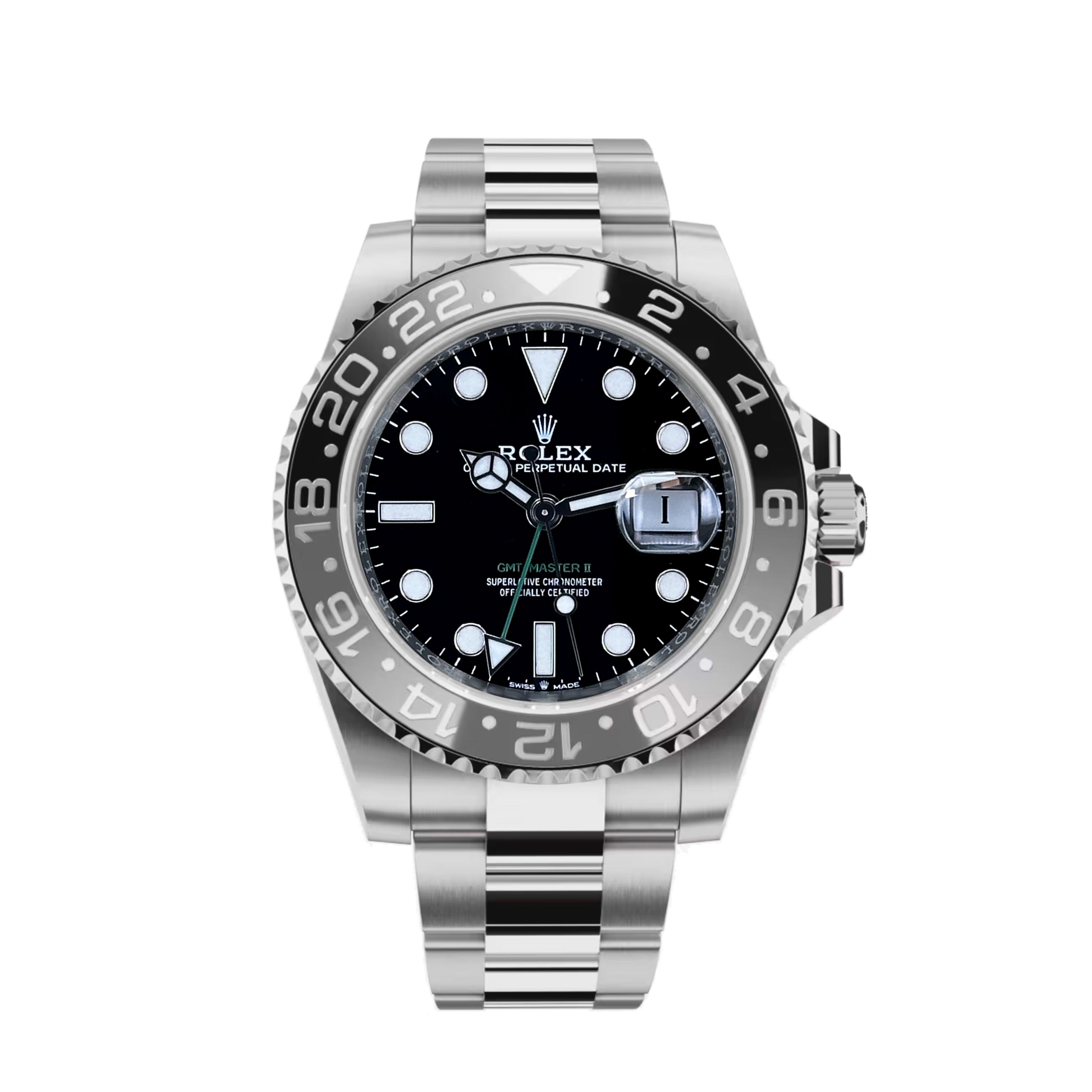 This Rolex GMT Master II 126710 GRNR has a black dial and a bracelet strap. This Rolex has undergone a thorough inspection of water resistance, accuracy, functionality and condition to determine the level of reconditioning required to meet our strict standards. It has also been referenced against technical documents and manufacturer records where available to ensure authenticity and a clean history. Our watches have a 24-month warranty for your peace of mind, in conjunction with any remaining manufacturer’s warranty from new or from service. To maintain the manufacturer’s warranty on this watch, it has not been polished in our service centre.