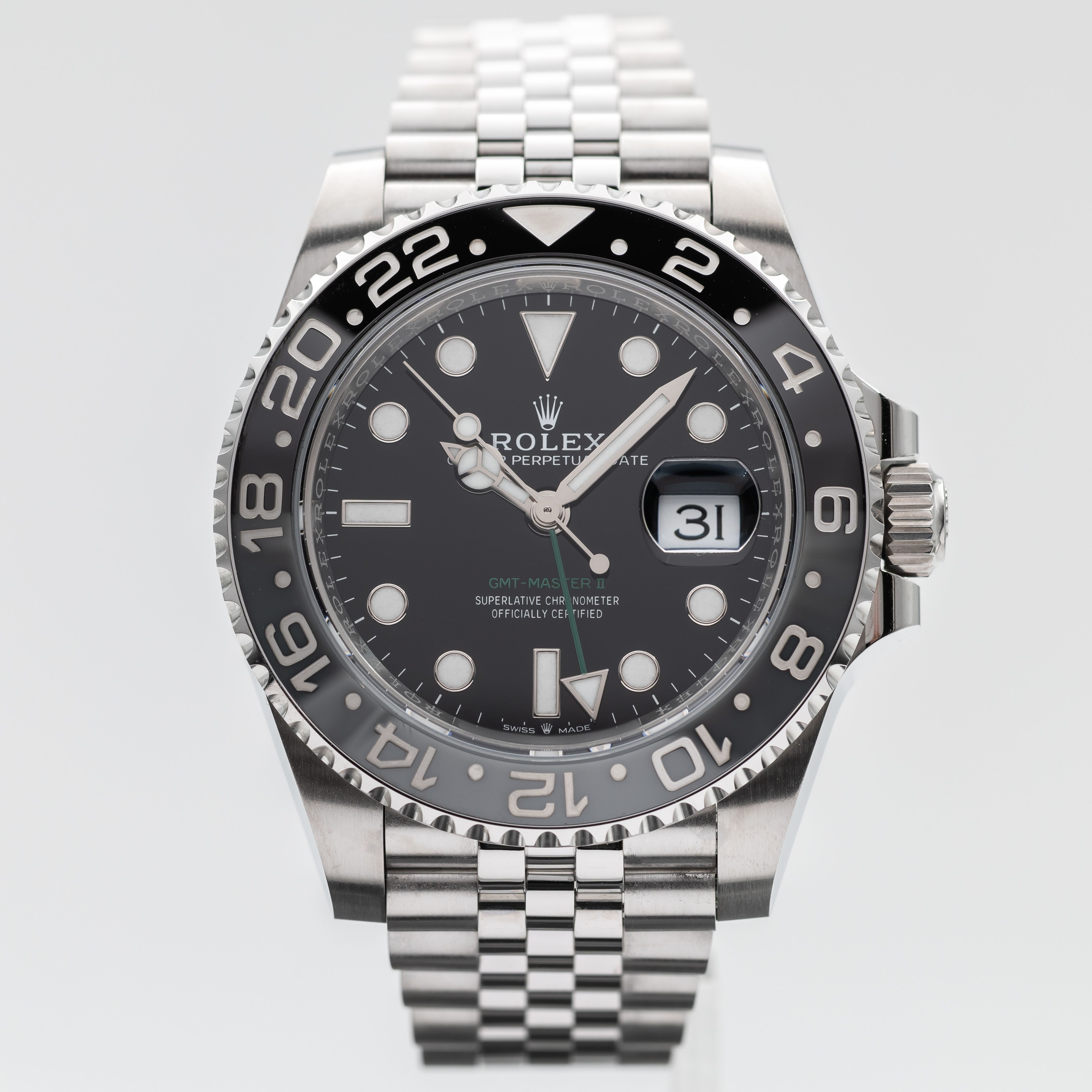 This Rolex GMT Master II 126710 GRNR has a black dial and a bracelet strap. This Rolex has undergone a thorough inspection of water resistance, accuracy, functionality and condition to determine the level of reconditioning required to meet our strict standards. It has also been referenced against technical documents and manufacturer records where available to ensure authenticity and a clean history. Our watches have a 24-month warranty for your peace of mind, in conjunction with any remaining manufacturer’s warranty from new or from service. To maintain the manufacturer’s warranty on this watch, it has not been polished in our service centre.