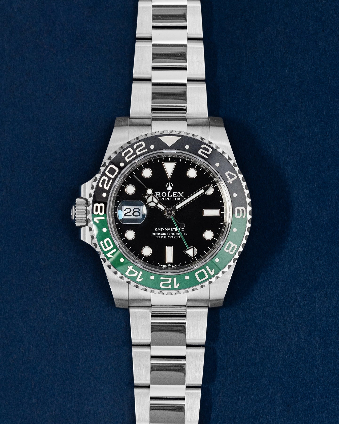 This Rolex GMT Master II 126720 VTNR has a black dial and a bracelet strap. This Rolex has undergone a thorough inspection of water resistance, accuracy, functionality and condition to determine the level of reconditioning required to meet our strict standards. It has also been referenced against technical documents and manufacturer records where available to ensure authenticity and a clean history. Our watches have a 24-month warranty for your peace of mind, in conjunction with any remaining manufacturer’s warranty from new or from service. To maintain the manufacturer’s warranty on this watch, it has not been polished in our service centre.