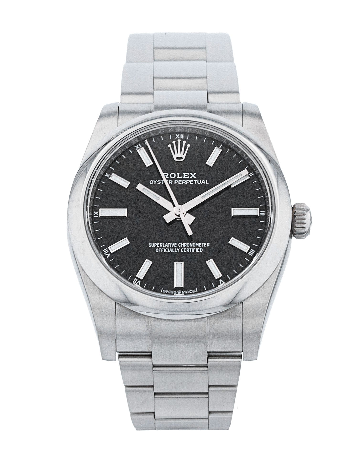 This Rolex Oyster Perpetual 124200 has a black baton dial and a bracelet strap. This Rolex has undergone a thorough inspection of water resistance, accuracy, functionality and condition to determine the level of reconditioning required to meet our strict standards. It has also been referenced against technical documents and manufacturer records where available to ensure authenticity and a clean history. Our watches have a 24-month warranty for your peace of mind, in conjunction with any remaining manufacturer’s warranty from new or from service. To maintain the manufacturer’s warranty on this watch, it has not been polished in our service centre.