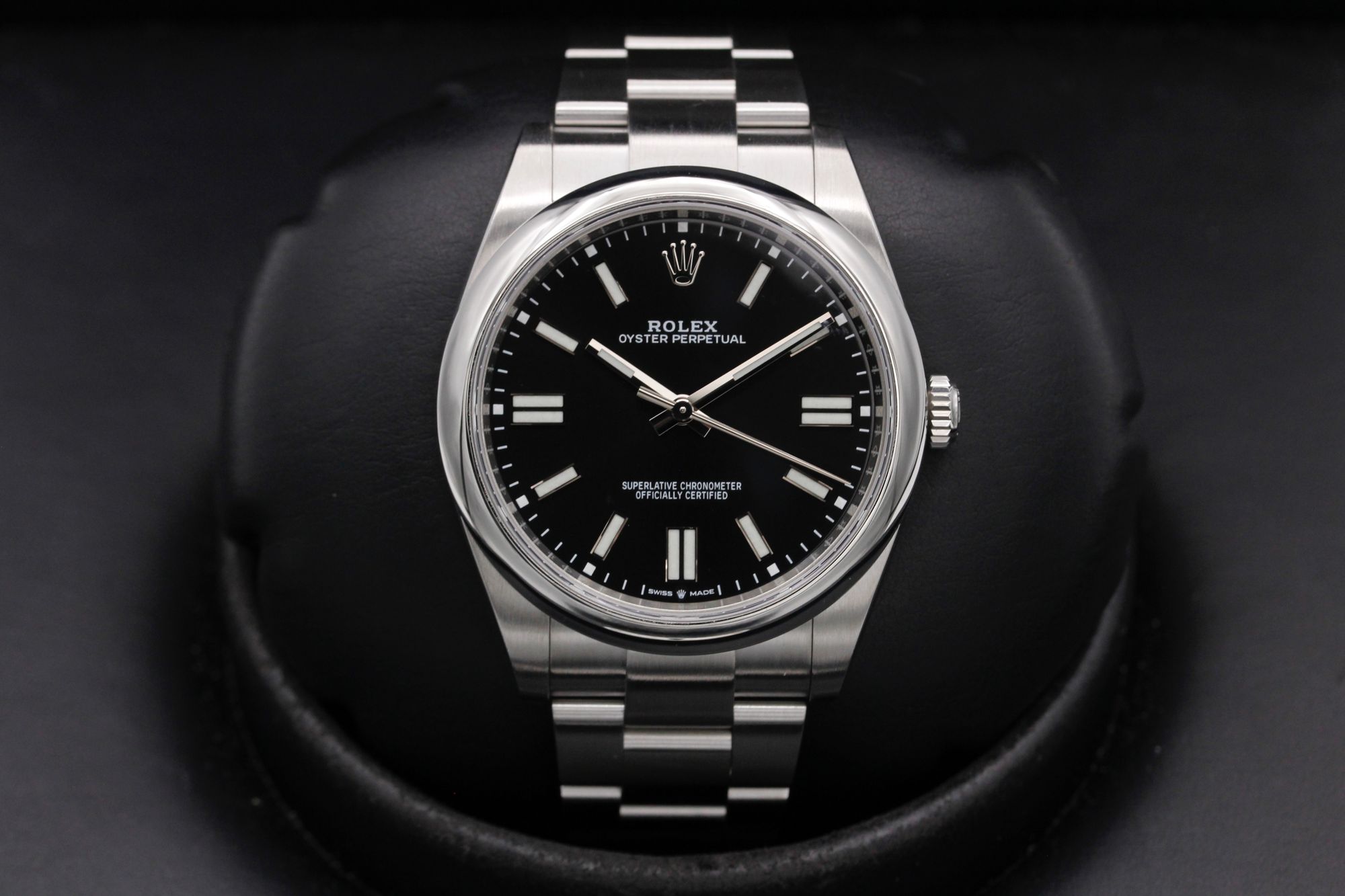This Rolex Oyster Perpetual 124300 has a black baton dial and a bracelet strap. This Rolex has undergone a thorough inspection of water resistance, accuracy, functionality and condition to determine the level of reconditioning required to meet our strict standards. It has also been referenced against technical documents and manufacturer records where available to ensure authenticity and a clean history. Our watches have a 24-month warranty for your peace of mind, in conjunction with any remaining manufacturer’s warranty from new or from service. To maintain the manufacturer’s warranty on this watch, it has not been polished in our service centre.