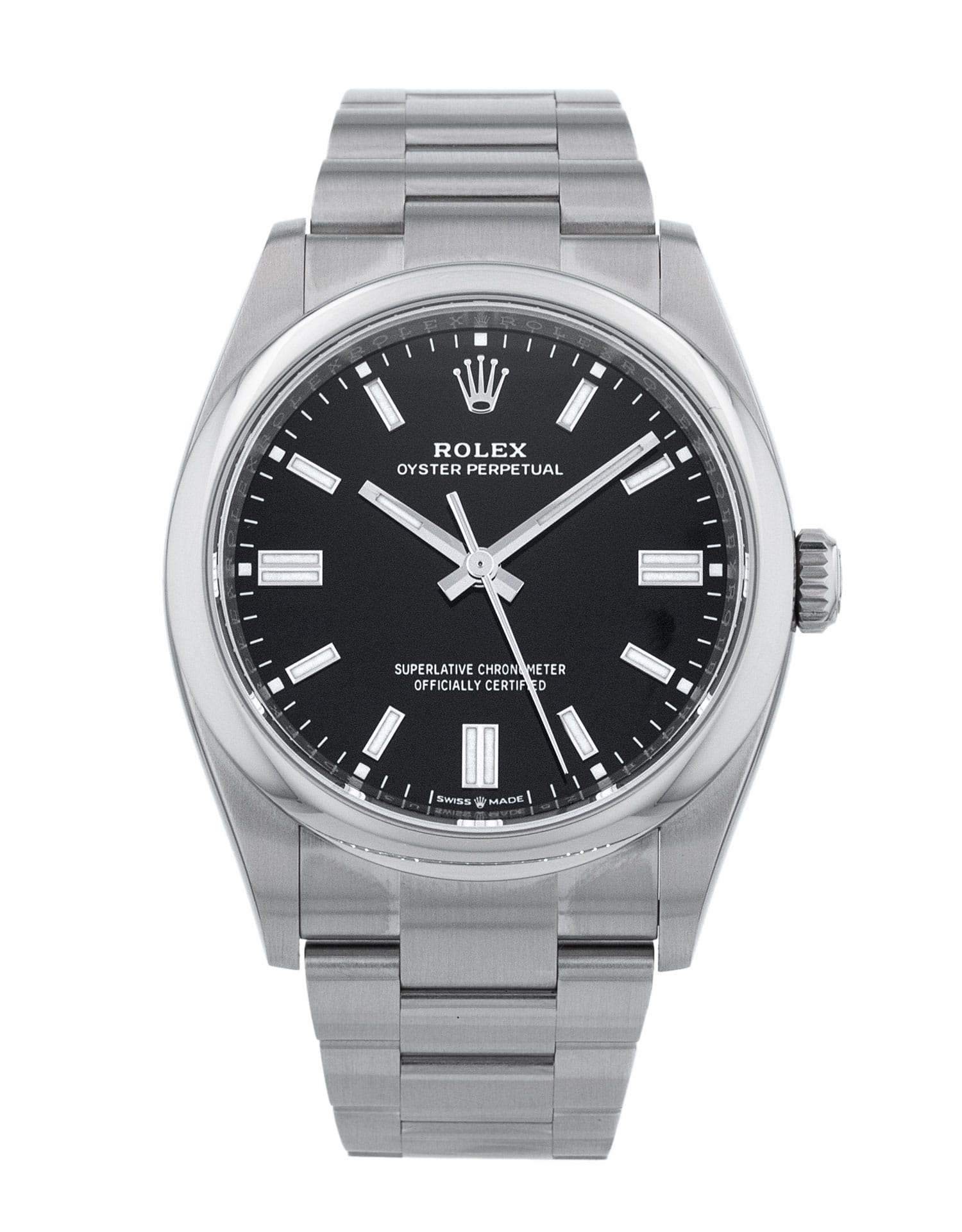 This Rolex Oyster Perpetual 126000 has a black baton dial and a bracelet strap. This Rolex has undergone a thorough inspection of water resistance, accuracy, functionality and condition to determine the level of reconditioning required to meet our strict standards. It has also been referenced against technical documents and manufacturer records where available to ensure authenticity and a clean history. Our watches have a 24-month warranty for your peace of mind, in conjunction with any remaining manufacturer’s warranty from new or from service. To maintain the manufacturer’s warranty on this watch, it has not been polished in our service centre.