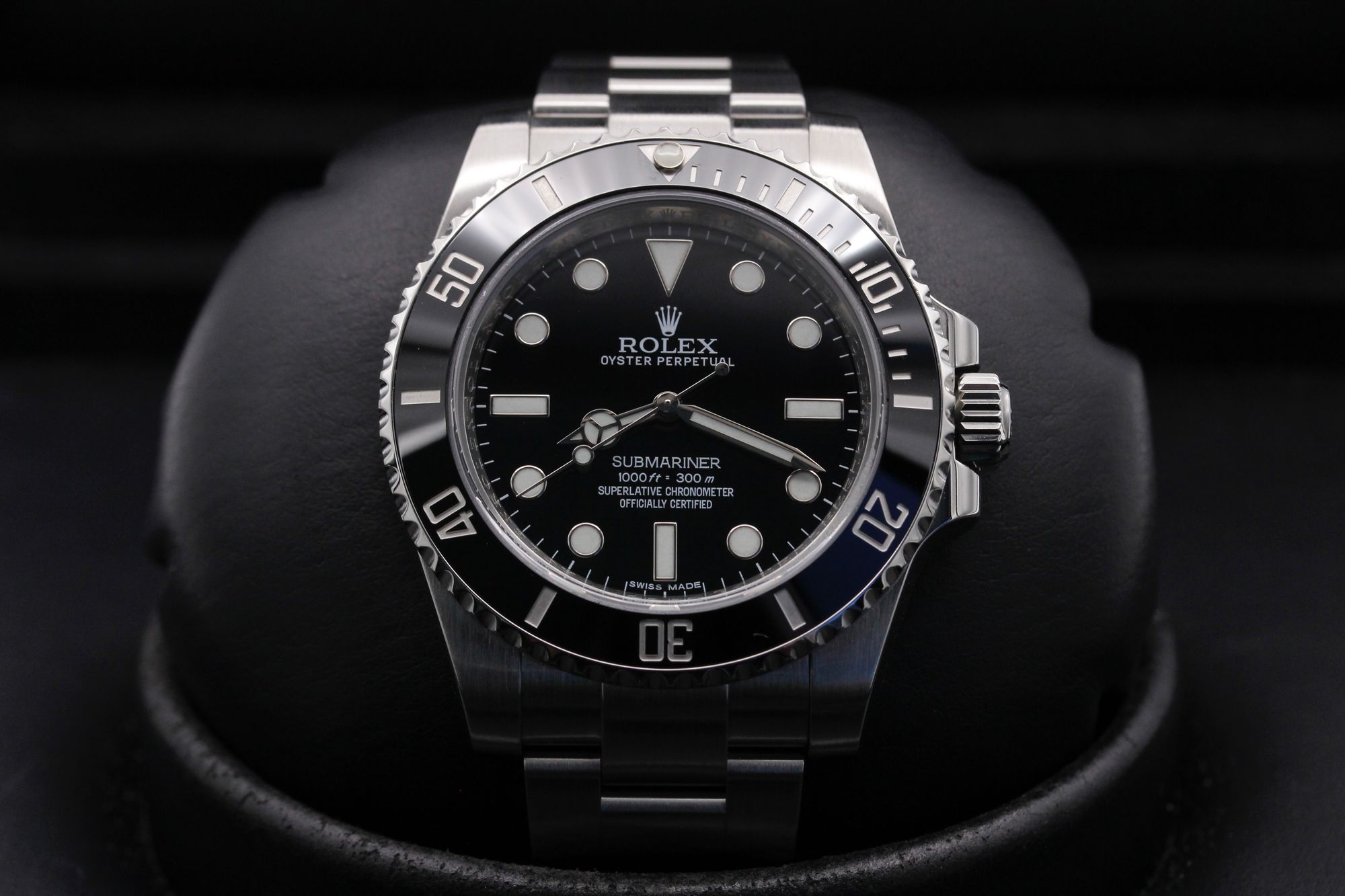 This is a superb example of a 'no-date' Submariner—a model that is prized for its cleaner, pared-down look and symmetrical design that many collectors appreciate. The ref 114060 follows on from and updates the 14060M, which began life with series P in the year 2000—but its predecessor, the plain 14060, was in production as early as 1990. Fans will also point out that the original Submariners, from their introduction in 1953, did not have date windows. While this model continues to use the flawless in-house calibre 3130, it vastly improves the bezel with high-tech ceramic and also upgrades the bracelet.