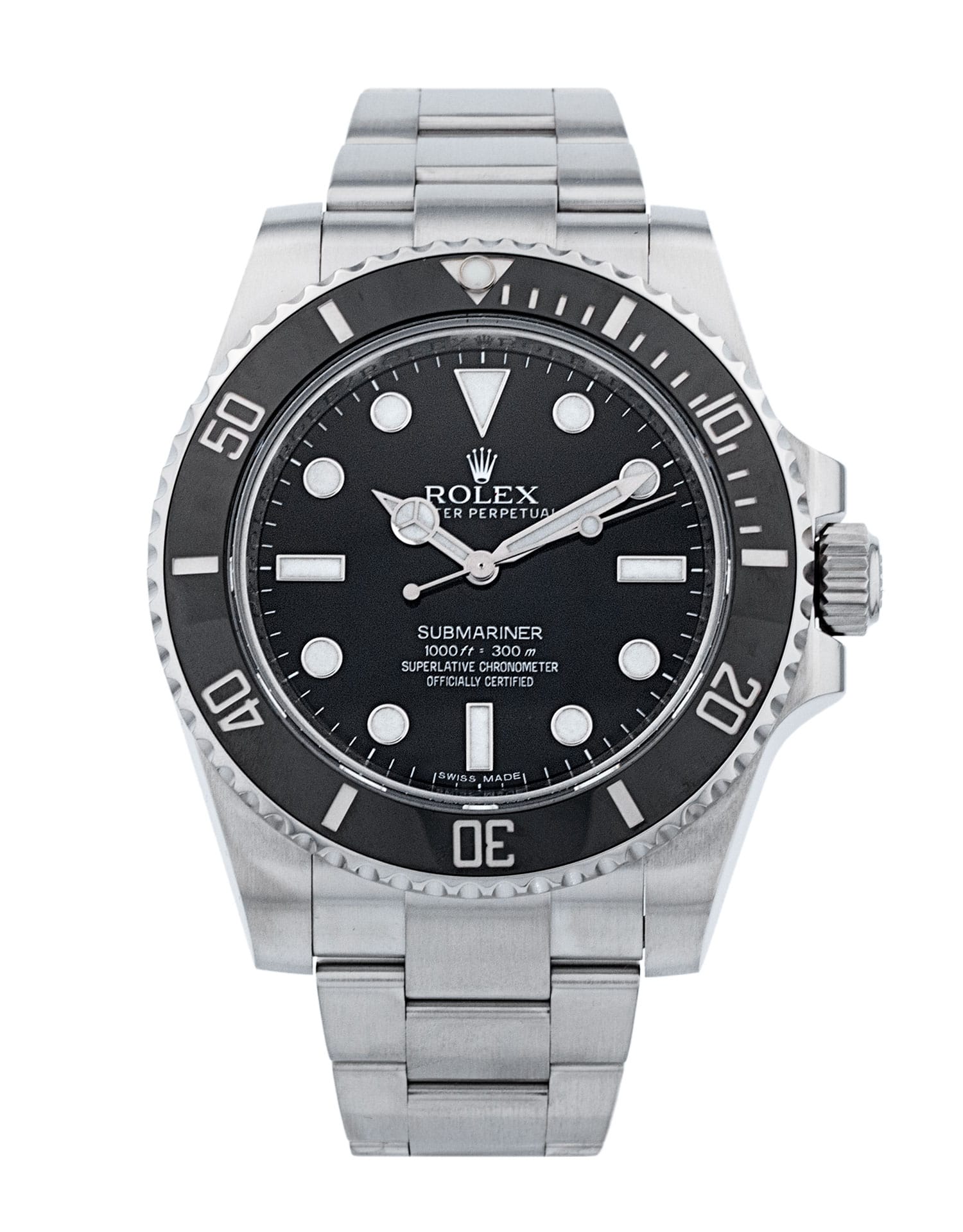 This is a superb example of a 'no-date' Submariner—a model that is prized for its cleaner, pared-down look and symmetrical design that many collectors appreciate. The ref 114060 follows on from and updates the 14060M, which began life with series P in the year 2000—but its predecessor, the plain 14060, was in production as early as 1990. Fans will also point out that the original Submariners, from their introduction in 1953, did not have date windows. While this model continues to use the flawless in-house calibre 3130, it vastly improves the bezel with high-tech ceramic and also upgrades the bracelet.