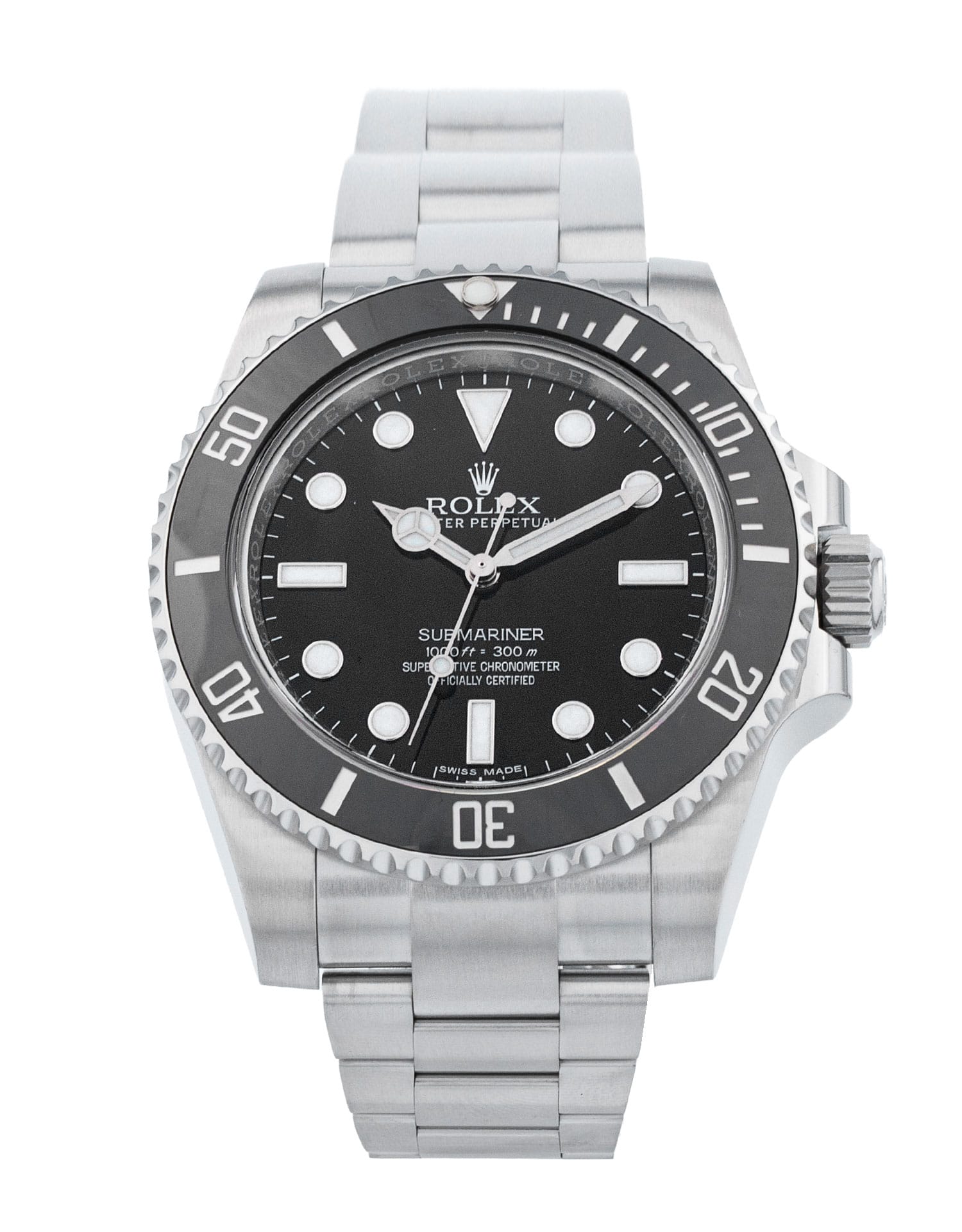 This is a superb example of a 'no-date' Submariner—a model that is prized for its cleaner, pared-down look and symmetrical design that many collectors appreciate. The ref 114060 follows on from and updates the 14060M, which began life with series P in the year 2000—but its predecessor, the plain 14060, was in production as early as 1990. Fans will also point out that the original Submariners, from their introduction in 1953, did not have date windows. While this model continues to use the flawless in-house calibre 3130, it vastly improves the bezel with high-tech ceramic and also upgrades the bracelet.