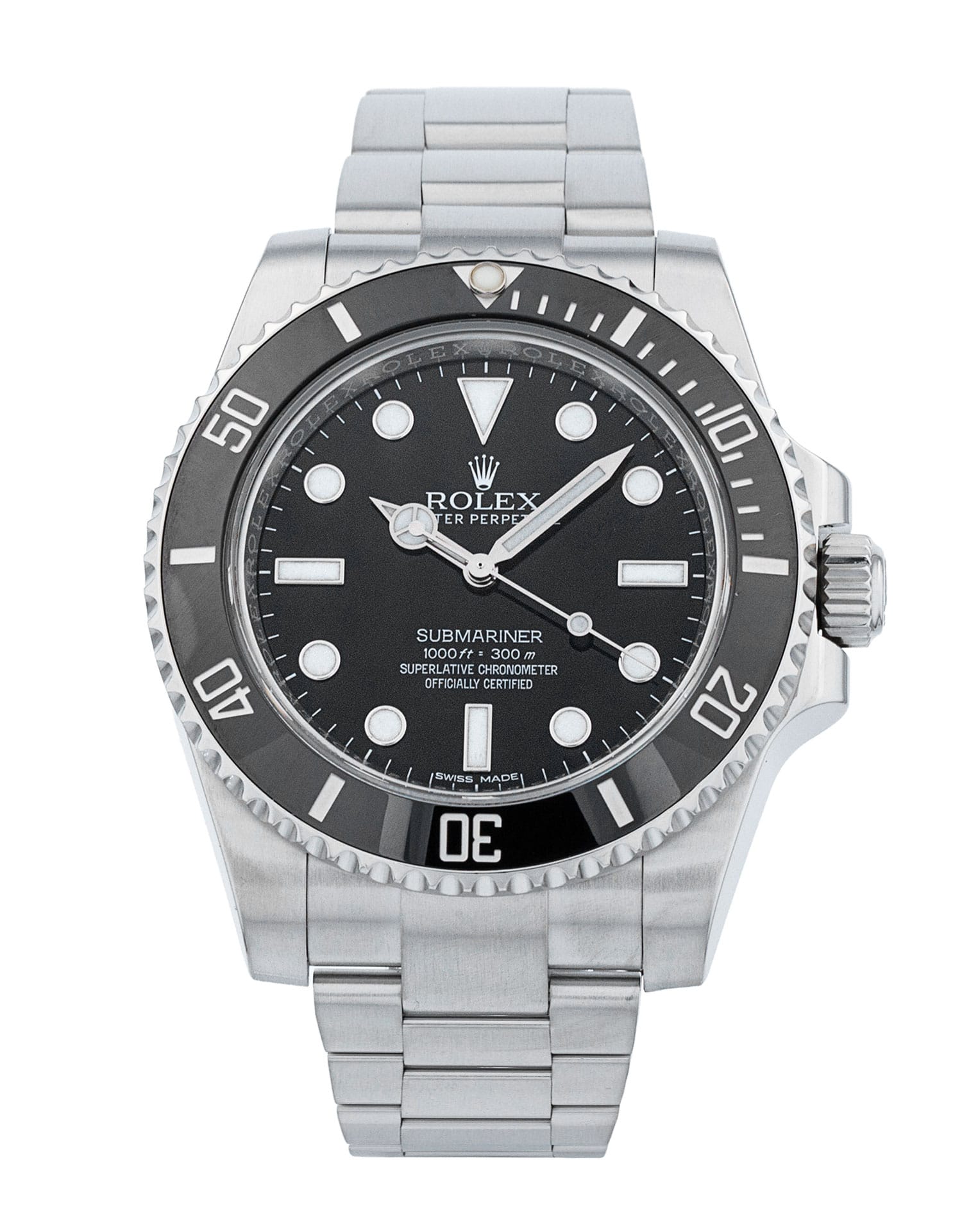 This is a superb example of a 'no-date' Submariner—a model that is prized for its cleaner, pared-down look and symmetrical design that many collectors appreciate. The ref 114060 follows on from and updates the 14060M, which began life with series P in the year 2000—but its predecessor, the plain 14060, was in production as early as 1990. Fans will also point out that the original Submariners, from their introduction in 1953, did not have date windows. While this model continues to use the flawless in-house calibre 3130, it vastly improves the bezel with high-tech ceramic and also upgrades the bracelet.