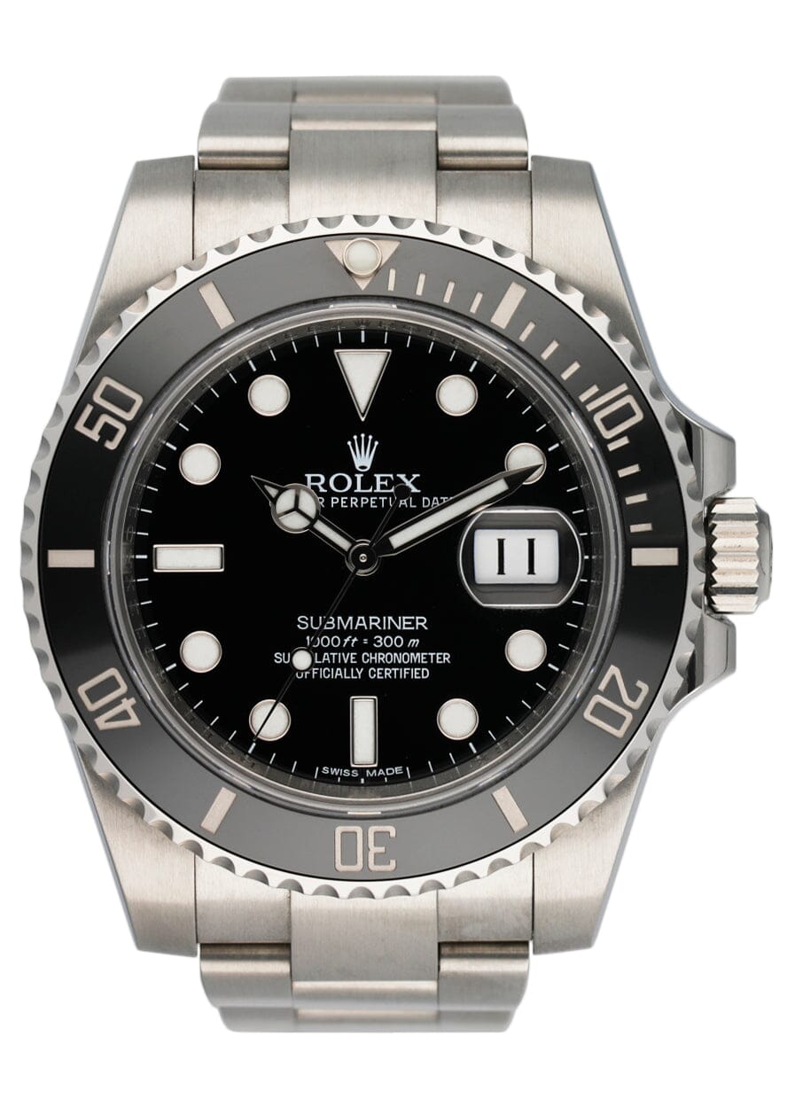 There's no other watch like the Submariner, the peerless tool for divers that has enjoyed an unmatched reputation since its introduction in 1953. The watch is prized for its versatility—sporty and durable enough to be useful for professional diving, possessed of the elegance needed for a black tie event, and with a design so classic it could be worn every day to the office. This stunning version updates the previous reference 16610 with high-tech specs, including the ceramic insert with platinum-coated numerals in the bezel, not to mention the superb calibre 3135 inside.