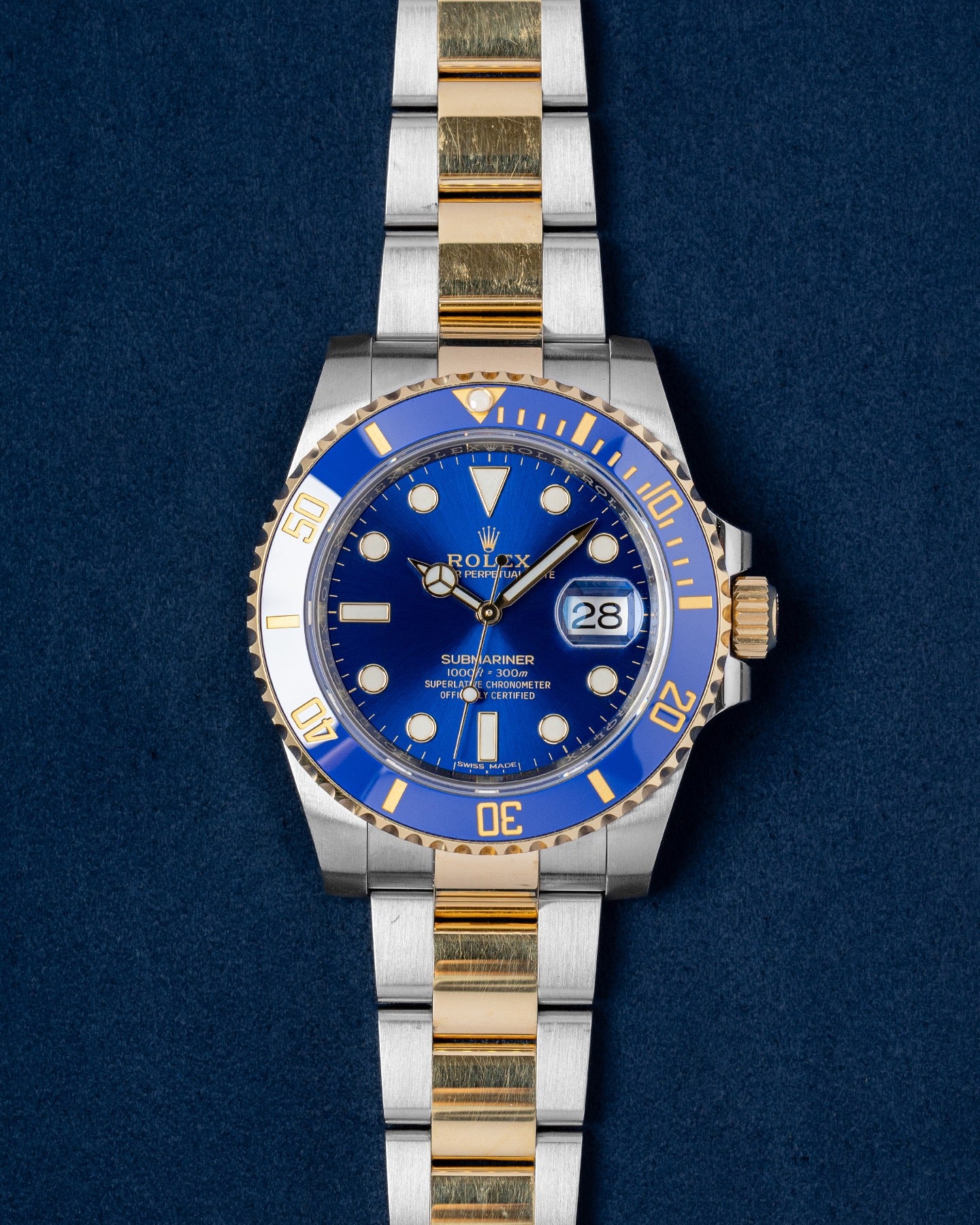 This Rolex Submariner 116613 LB has a blue dial and a bracelet strap. This Rolex has undergone a thorough inspection of water resistance, accuracy, functionality and condition to determine the level of reconditioning required to meet our strict standards. It has also been referenced against technical documents and manufacturer records where available to ensure authenticity and a clean history. All our watches have a 24-month warranty for your peace of mind. One of our skilled polishing technicians has removed marks on the case and bracelet of this watch, brought about by daily wear and tear, which is why this watch does not come with the remaining manufacturer’s warranty.