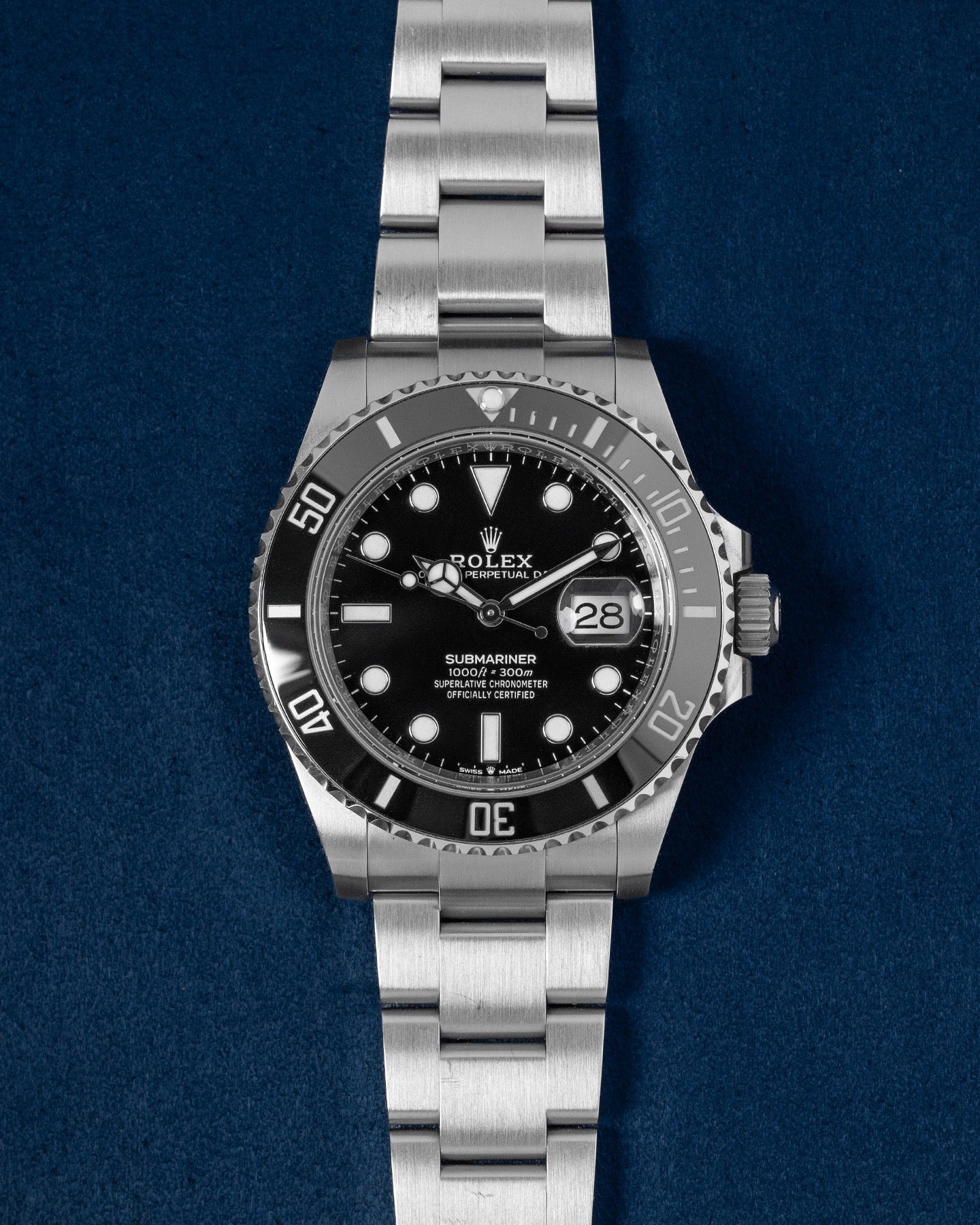 This Rolex Submariner 126610 LN has a black dial and a bracelet strap. This Rolex has undergone a thorough inspection of water resistance, accuracy, functionality and condition to determine the level of reconditioning required to meet our strict standards. It has also been referenced against technical documents and manufacturer records where available to ensure authenticity and a clean history. Our watches have a 24-month warranty for your peace of mind, in conjunction with any remaining manufacturer’s warranty from new or from service. To maintain the manufacturer’s warranty on this watch, it has not been polished in our service centre.