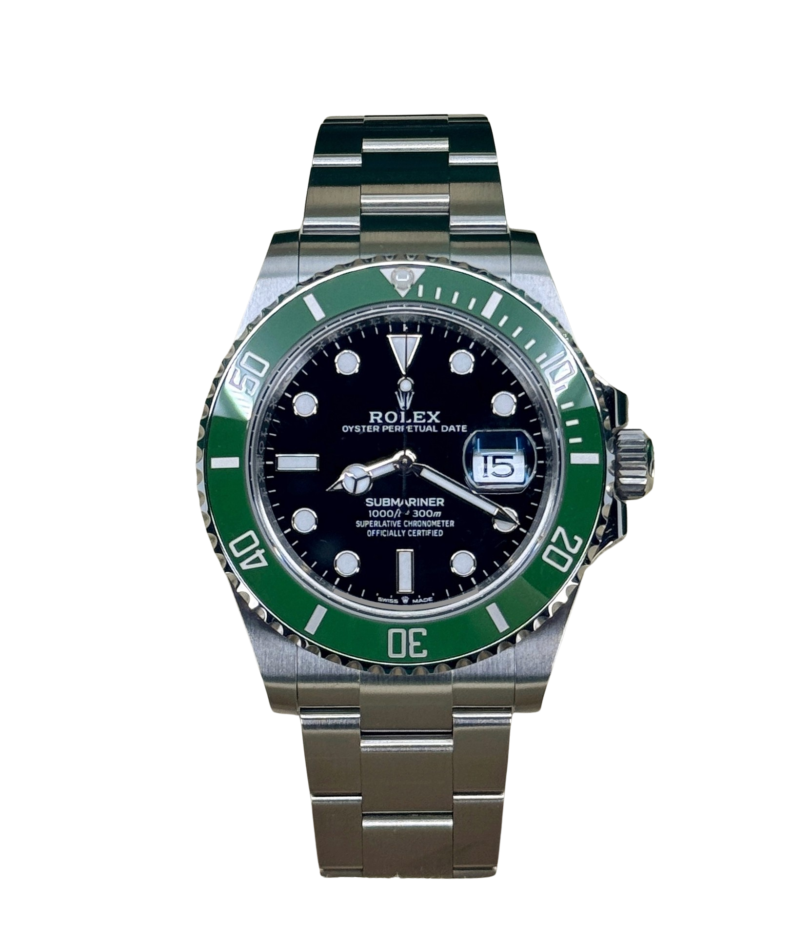 This Rolex Submariner 126610 LV has a black dial and a bracelet strap. This Rolex has undergone a thorough inspection of water resistance, accuracy, functionality and condition to determine the level of reconditioning required to meet our strict standards. It has also been referenced against technical documents and manufacturer records where available to ensure authenticity and a clean history. Our watches have a 24-month warranty for your peace of mind, in conjunction with any remaining manufacturer’s warranty from new or from service. To maintain the manufacturer’s warranty on this watch, it has not been polished in our service centre.