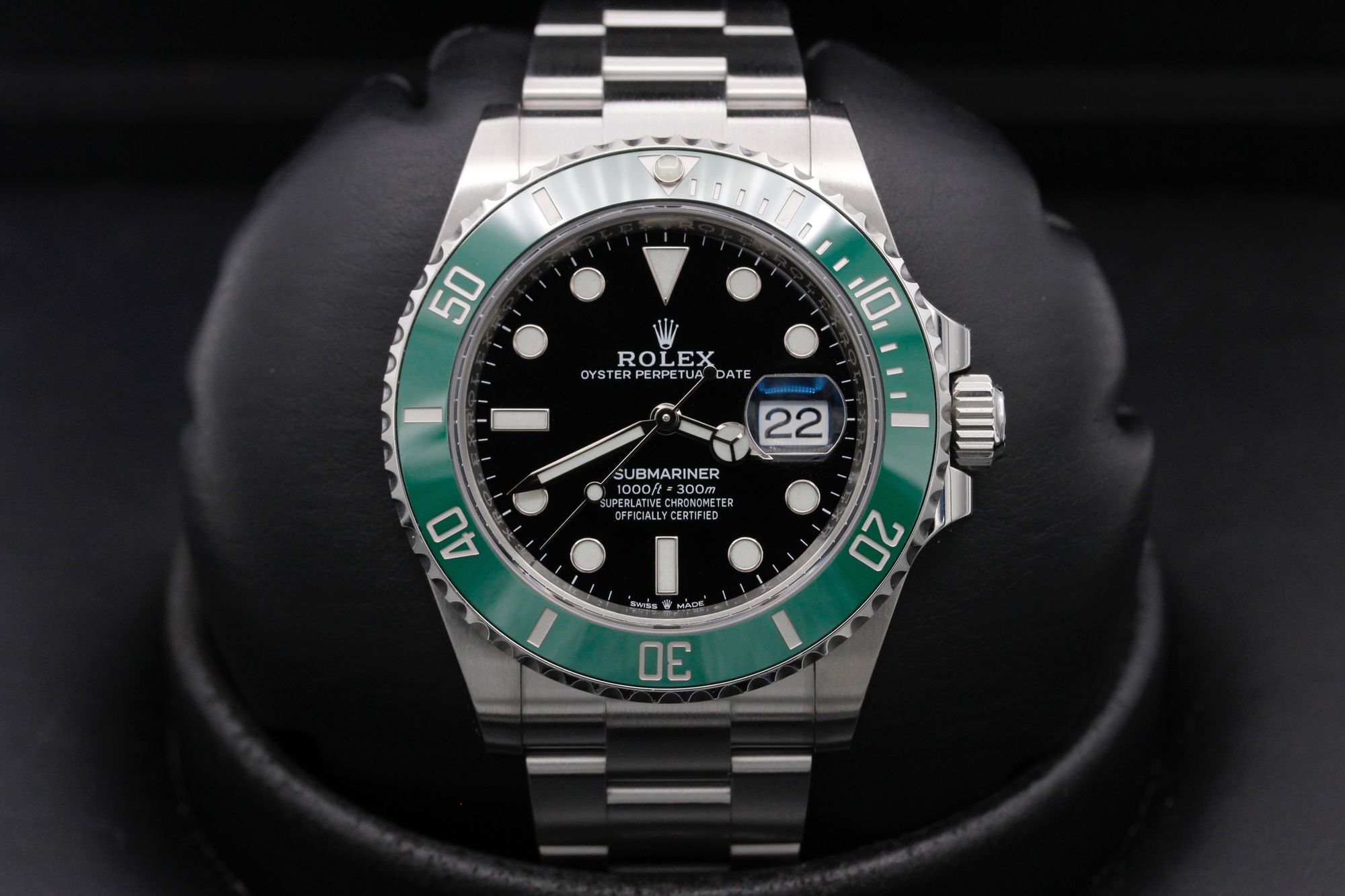 This Rolex Submariner 126610 LV has a black dial and a bracelet strap. This Rolex has undergone a thorough inspection of water resistance, accuracy, functionality and condition to determine the level of reconditioning required to meet our strict standards. It has also been referenced against technical documents and manufacturer records where available to ensure authenticity and a clean history. Our watches have a 24-month warranty for your peace of mind, in conjunction with any remaining manufacturer’s warranty from new or from service. To maintain the manufacturer’s warranty on this watch, it has not been polished in our service centre.