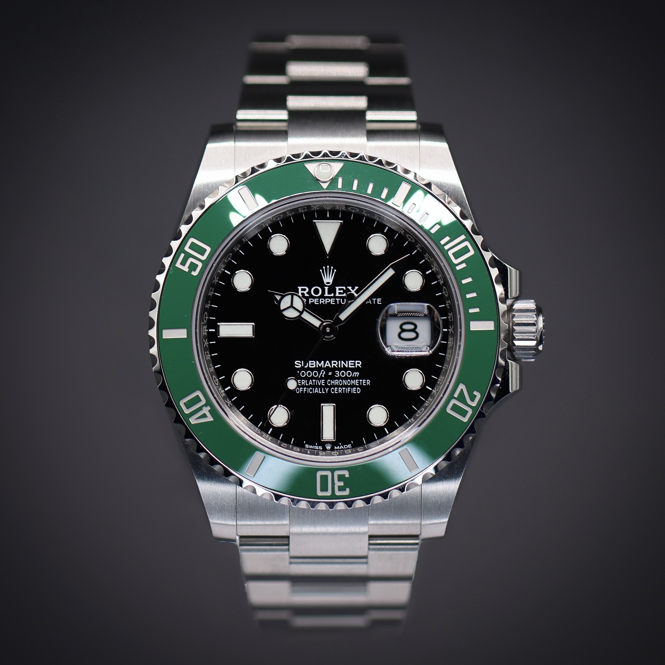 This Rolex Submariner 126610 LV has a black dial and a bracelet strap. This Rolex has undergone a thorough inspection of water resistance, accuracy, functionality and condition to determine the level of reconditioning required to meet our strict standards. It has also been referenced against technical documents and manufacturer records where available to ensure authenticity and a clean history. Our watches have a 24-month warranty for your peace of mind, in conjunction with any remaining manufacturer’s warranty from new or from service. To maintain the manufacturer’s warranty on this watch, it has not been polished in our service centre.