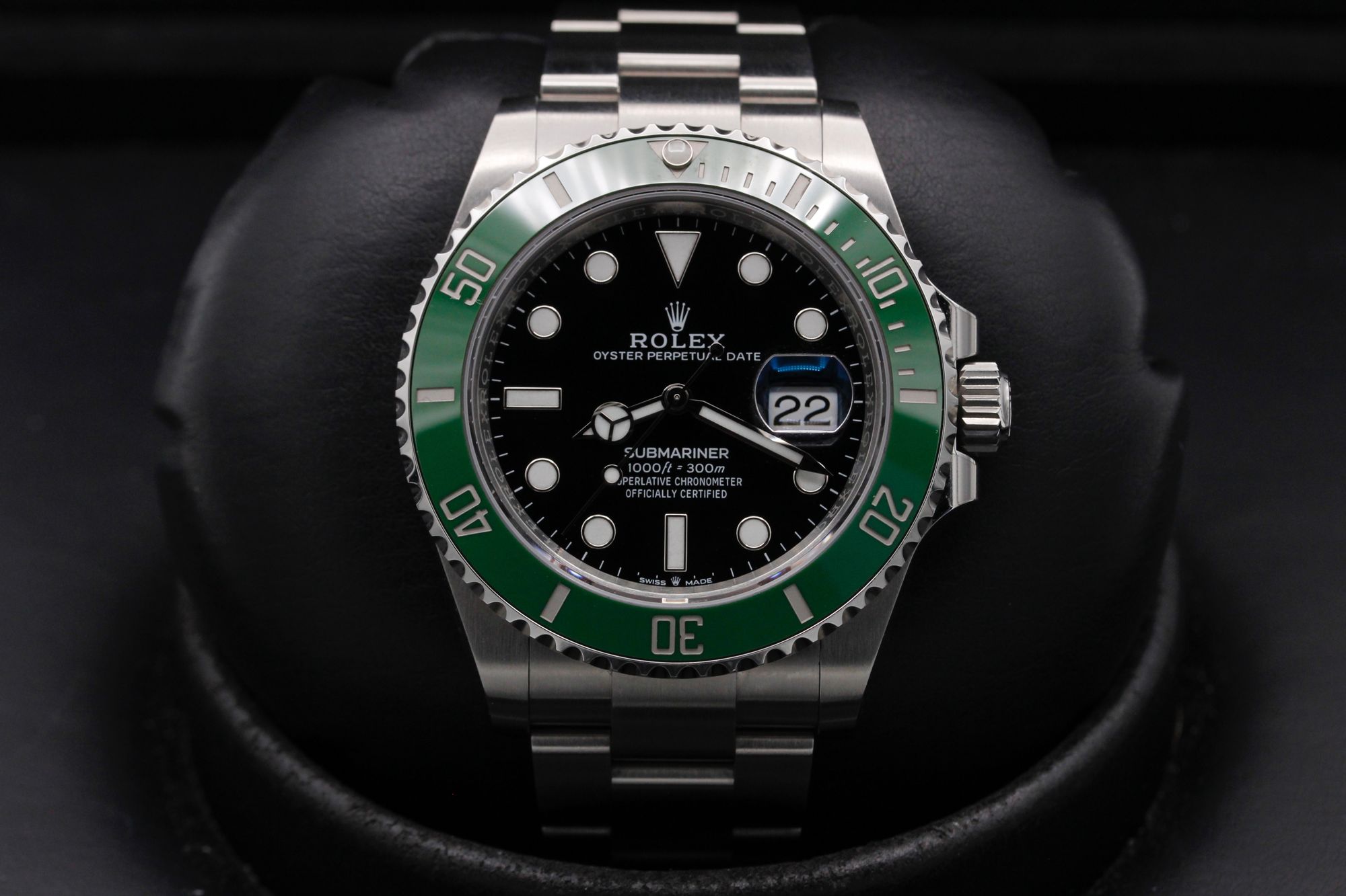 This Rolex Submariner 126610 LV has a black dial and a bracelet strap. This Rolex has undergone a thorough inspection of water resistance, accuracy, functionality and condition to determine the level of reconditioning required to meet our strict standards. It has also been referenced against technical documents and manufacturer records where available to ensure authenticity and a clean history. Our watches have a 24-month warranty for your peace of mind, in conjunction with any remaining manufacturer’s warranty from new or from service. To maintain the manufacturer’s warranty on this watch, it has not been polished in our service centre.