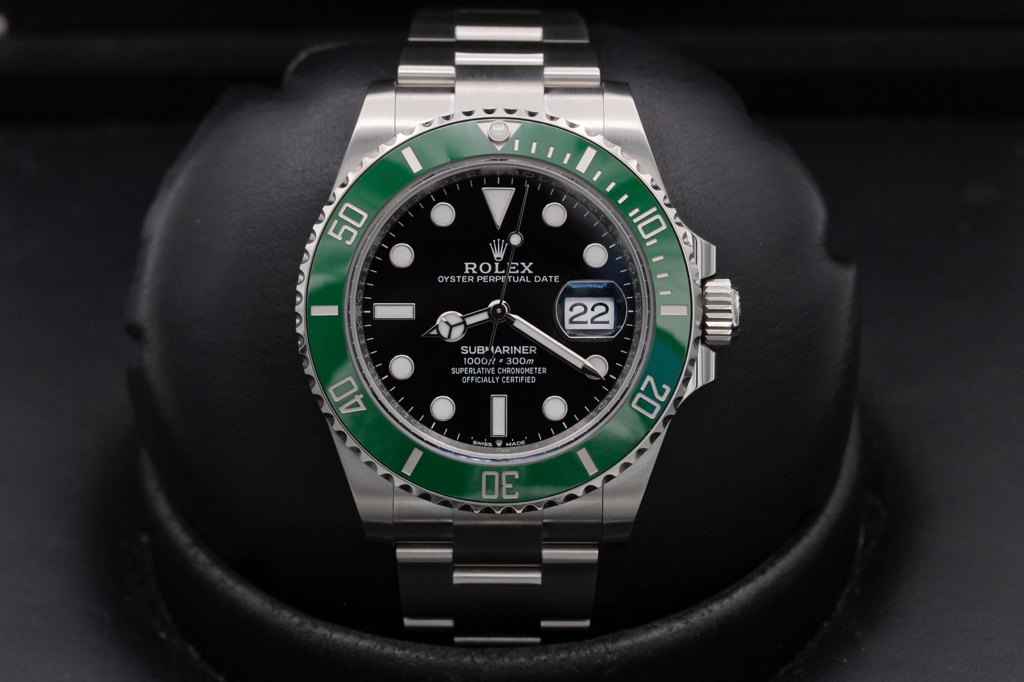 This Rolex Submariner 126610 LV has a black dial and a bracelet strap. This Rolex has undergone a thorough inspection of water resistance, accuracy, functionality and condition to determine the level of reconditioning required to meet our strict standards. It has also been referenced against technical documents and manufacturer records where available to ensure authenticity and a clean history. Our watches have a 24-month warranty for your peace of mind, in conjunction with any remaining manufacturer’s warranty from new or from service. To maintain the manufacturer’s warranty on this watch, it has not been polished in our service centre.