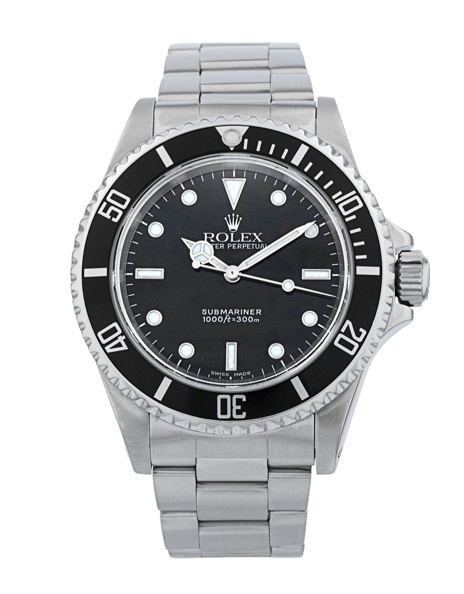 This Rolex Submariner 14060 has a black dial and a bracelet strap. This Rolex has undergone a thorough inspection of water resistance, accuracy, functionality and condition to determine the level of reconditioning required to meet our strict standards. It has also been referenced against technical documents and manufacturer records where available to ensure authenticity and a clean history. All our watches have a 24-month warranty for your peace of mind. One of our skilled polishing technicians has removed marks on the case and bracelet of this watch, brought about by daily wear and tear, which is why this watch does not come with the remaining manufacturer’s warranty.