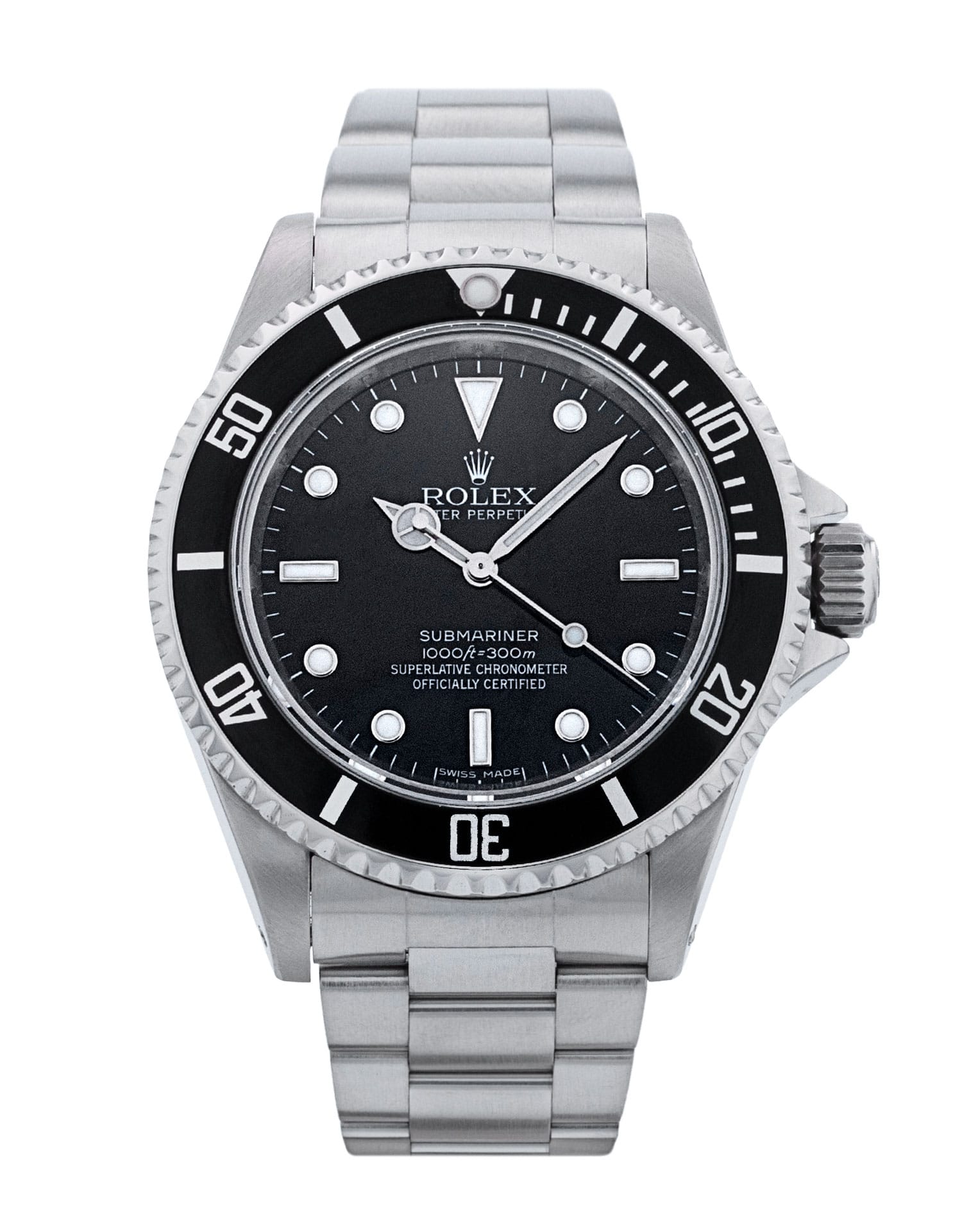 This Rolex Submariner 14060M has a black dial and a bracelet strap. This Rolex has undergone a thorough inspection of water resistance, accuracy, functionality and condition to determine the level of reconditioning required to meet our strict standards. It has also been referenced against technical documents and manufacturer records where available to ensure authenticity and a clean history. All our watches have a 24-month warranty for your peace of mind. One of our skilled polishing technicians has removed marks on the case and bracelet of this watch, brought about by daily wear and tear, which is why this watch does not come with the remaining manufacturer’s warranty.