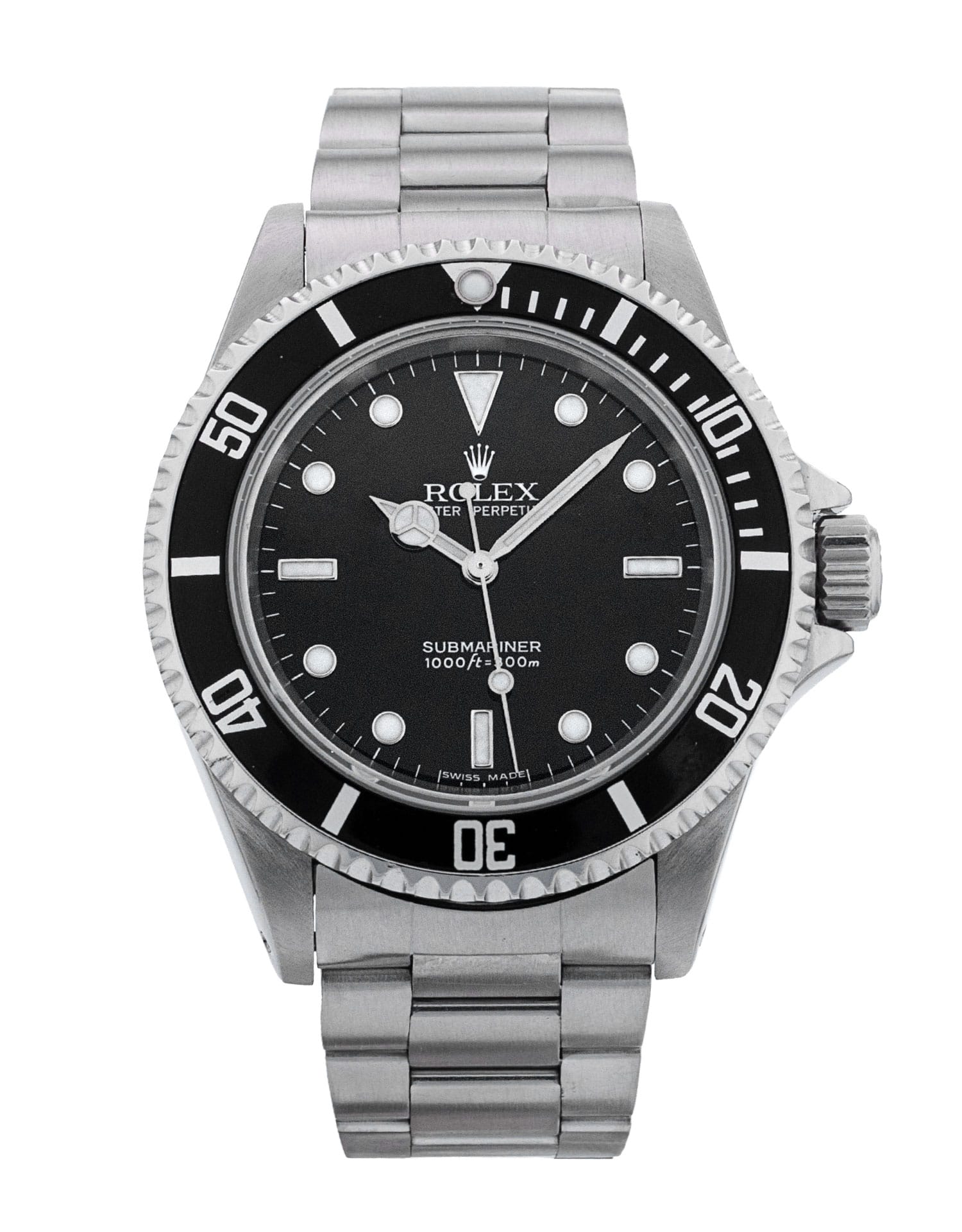 This Rolex Submariner 14060M has a black dial and a bracelet strap. This Rolex has undergone a thorough inspection of water resistance, accuracy, functionality and condition to determine the level of reconditioning required to meet our strict standards. It has also been referenced against technical documents and manufacturer records where available to ensure authenticity and a clean history. All our watches have a 24-month warranty for your peace of mind. One of our skilled polishing technicians has removed marks on the case and bracelet of this watch, brought about by daily wear and tear, which is why this watch does not come with the remaining manufacturer’s warranty.