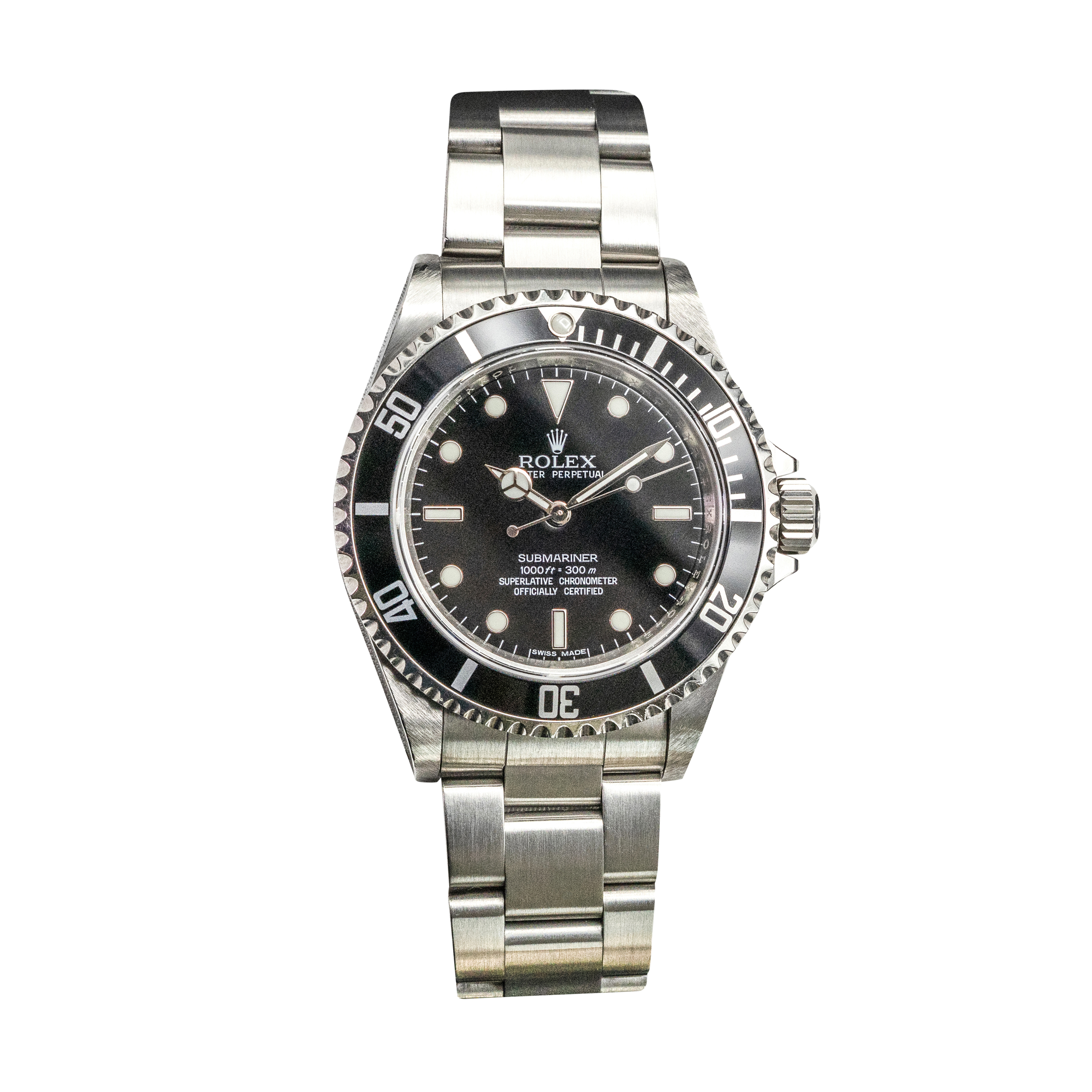 This Rolex Submariner 14060M has a black dial and a bracelet strap. This Rolex has undergone a thorough inspection of water resistance, accuracy, functionality and condition to determine the level of reconditioning required to meet our strict standards. It has also been referenced against technical documents and manufacturer records where available to ensure authenticity and a clean history. All our watches have a 24-month warranty for your peace of mind. One of our skilled polishing technicians has removed marks on the case and bracelet of this watch, brought about by daily wear and tear, which is why this watch does not come with the remaining manufacturer’s warranty.