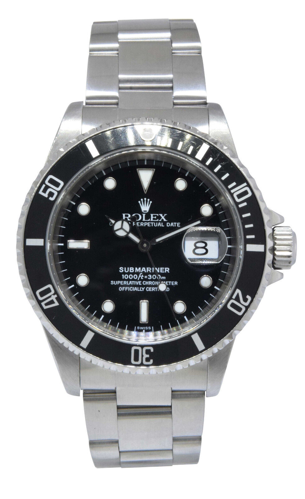 This Rolex Submariner 16610 has a black dial and a bracelet strap. This Rolex has undergone a thorough inspection of water resistance, accuracy, functionality and condition to determine the level of reconditioning required to meet our strict standards. It has also been referenced against technical documents and manufacturer records where available to ensure authenticity and a clean history. All our watches have a 24-month warranty for your peace of mind. One of our skilled polishing technicians has removed marks on the case and bracelet of this watch, brought about by daily wear and tear, which is why this watch does not come with the remaining manufacturer’s warranty.