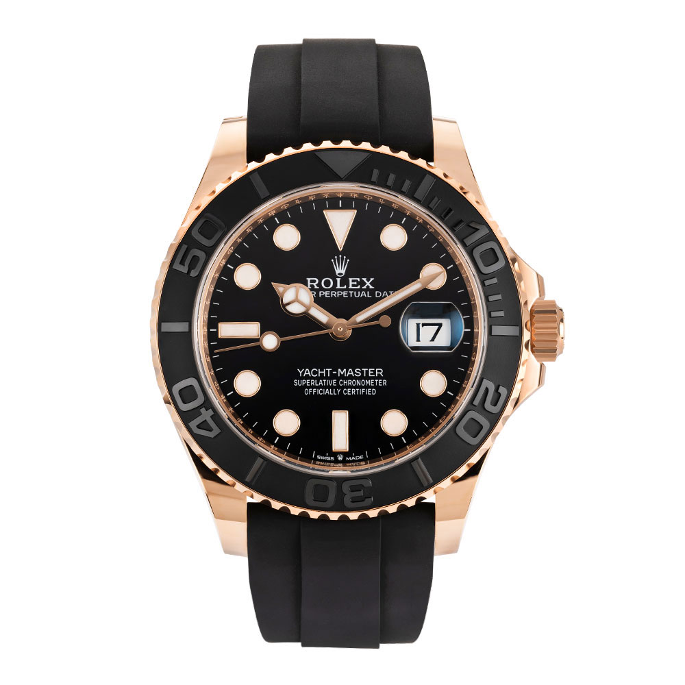 This Rolex Yacht-Master 116655 has a black dial and a rubber strap. This Rolex has undergone a thorough inspection of water resistance, accuracy, functionality and condition to determine the level of reconditioning required to meet our strict standards. It has also been referenced against technical documents and manufacturer records where available to ensure authenticity and a clean history. All our watches have a 24-month warranty for your peace of mind. One of our skilled polishing technicians has removed marks on the case and bracelet of this watch, brought about by daily wear and tear, which is why this watch does not come with the remaining manufacturer’s warranty.