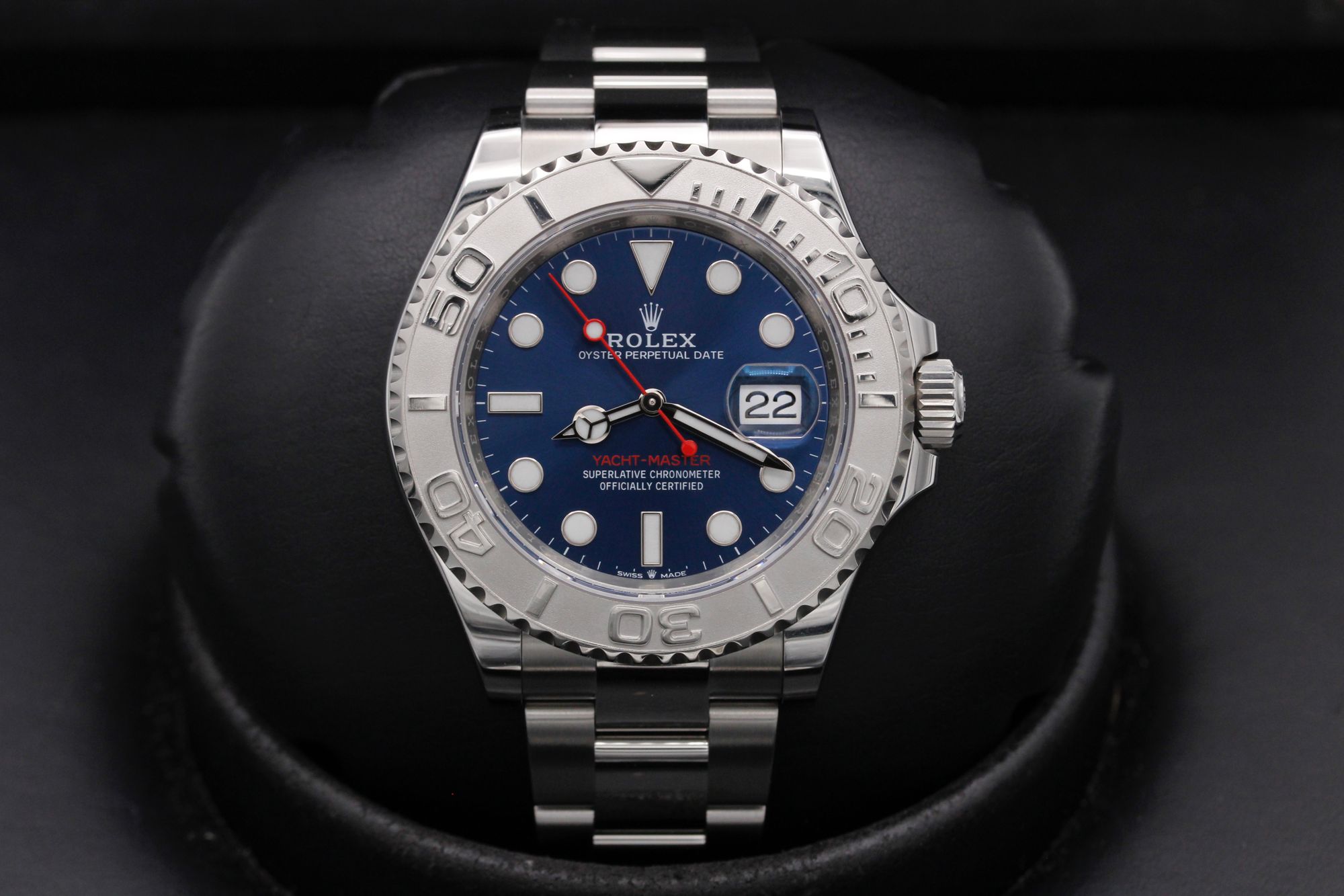 This Rolex Yacht-Master 126622 has a blue dial and a bracelet strap. This Rolex has undergone a thorough inspection of water resistance, accuracy, functionality and condition to determine the level of reconditioning required to meet our strict standards. It has also been referenced against technical documents and manufacturer records where available to ensure authenticity and a clean history. Our watches have a 24-month warranty for your peace of mind, in conjunction with any remaining manufacturer’s warranty from new or from service. To maintain the manufacturer’s warranty on this watch, it has not been polished in our service centre.