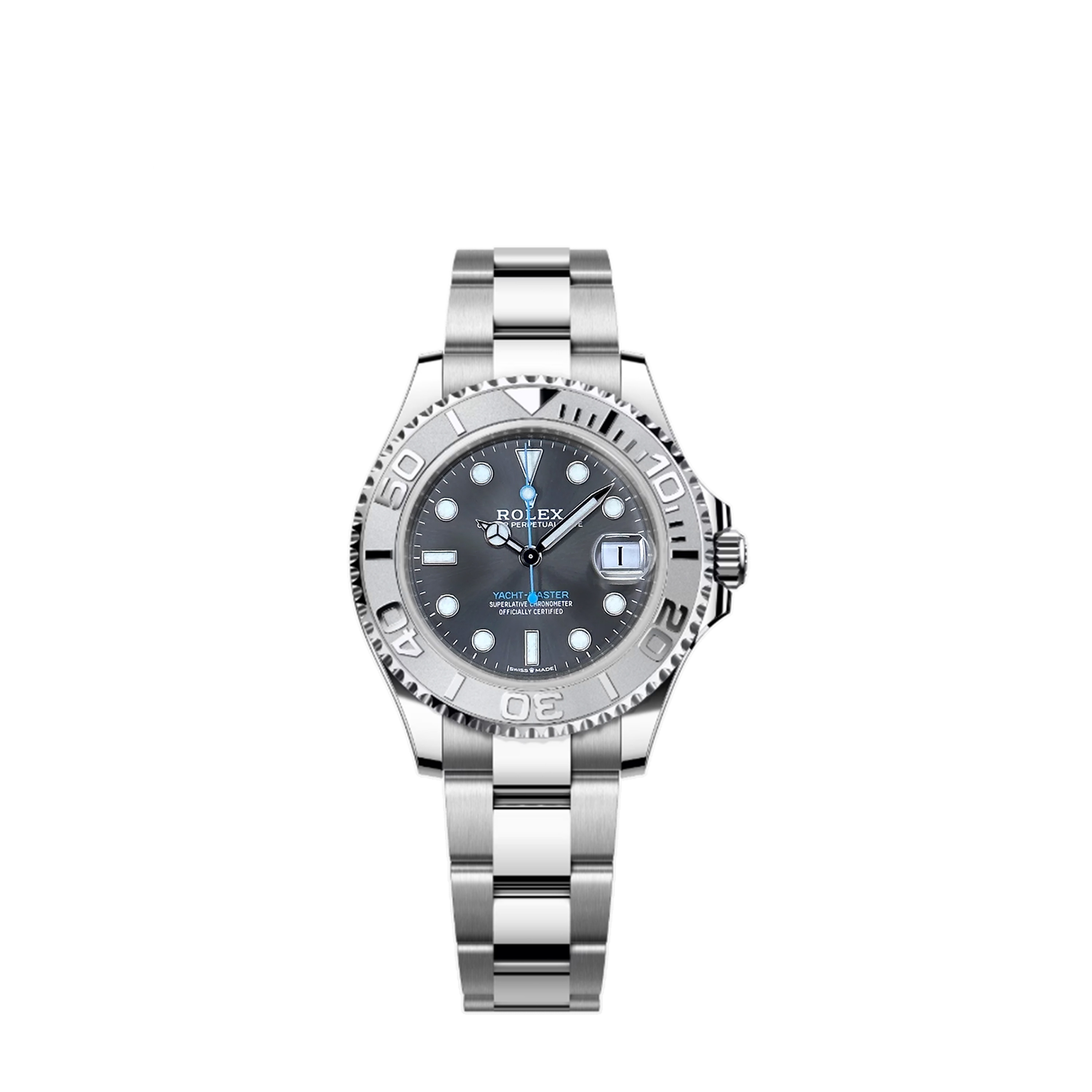 This Rolex Yacht-Master 268622 has a slate dial and a bracelet strap. This Rolex has undergone a thorough inspection of water resistance, accuracy, functionality and condition to determine the level of reconditioning required to meet our strict standards. It has also been referenced against technical documents and manufacturer records where available to ensure authenticity and a clean history. Our watches have a 24-month warranty for your peace of mind, in conjunction with any remaining manufacturer’s warranty from new or from service. To maintain the manufacturer’s warranty on this watch, it has not been polished in our service centre.