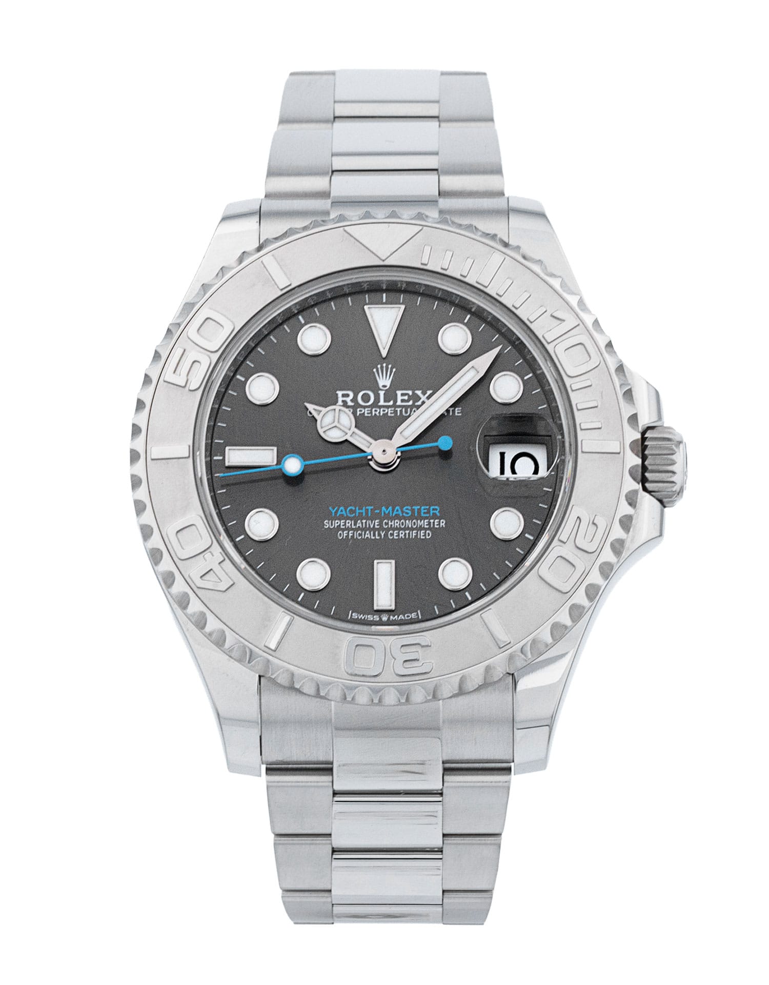 This Rolex Yacht-Master 268622 has a slate dial and a bracelet strap. This Rolex has undergone a thorough inspection of water resistance, accuracy, functionality and condition to determine the level of reconditioning required to meet our strict standards. It has also been referenced against technical documents and manufacturer records where available to ensure authenticity and a clean history. Our watches have a 24-month warranty for your peace of mind, in conjunction with any remaining manufacturer’s warranty from new or from service. To maintain the manufacturer’s warranty on this watch, it has not been polished in our service centre.