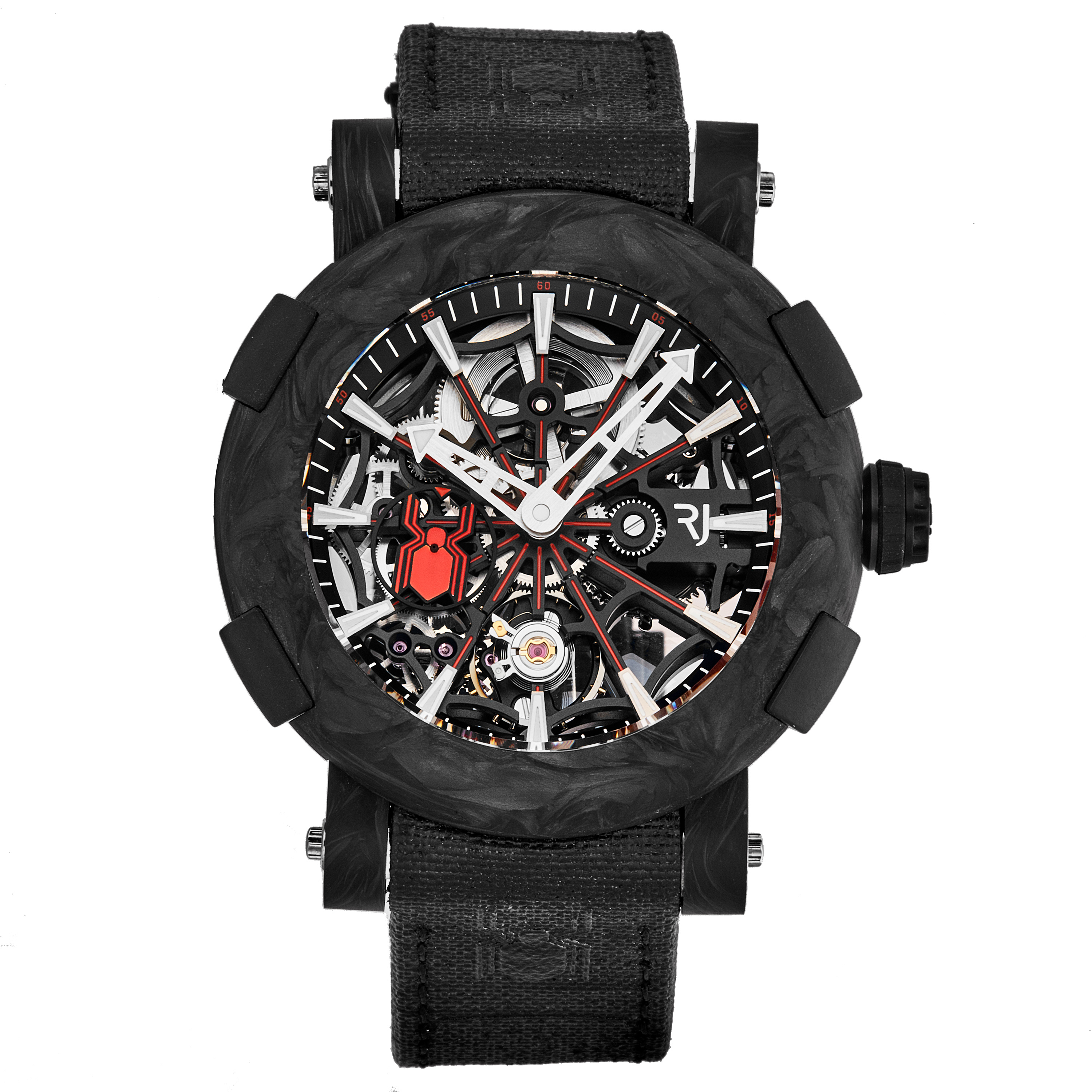 This Romain Jerome Arraw 1C45S.BBBR.1023.PR.SPM19 has a skeleton dial and a fabric strap. This Romain Jerome has undergone a thorough inspection of water resistance, accuracy, functionality and condition to determine the level of reconditioning required to meet our strict standards. It has also been referenced against technical documents and manufacturer records where available to ensure authenticity and a clean history. All our watches have a 24-month warranty for your peace of mind.