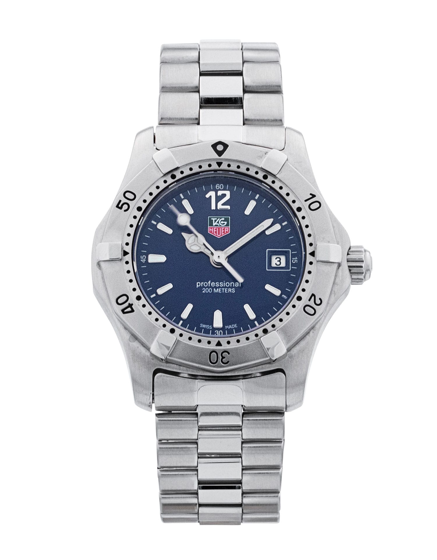 This Tag Heuer 2000 Series WK1313.BA0313 has a blue baton dial and a bracelet strap. This Tag Heuer has undergone a thorough inspection of accuracy, functionality and condition at our Tag Heuer certified service centre to determine the level of reconditioning required to meet our strict standards. It has also been checked against our records to ensure authenticity. All our watches have a 24-month warranty for your peace of mind.