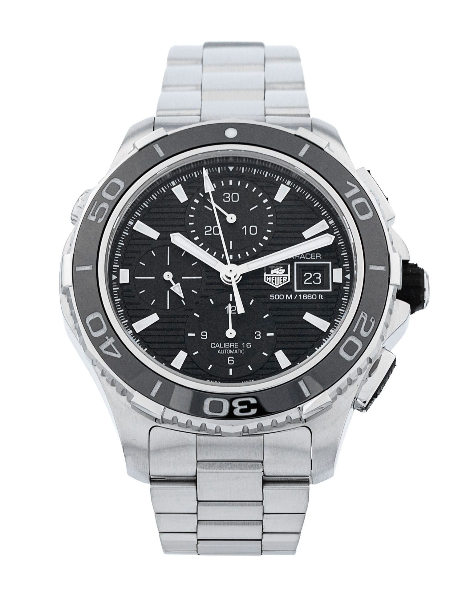 This Tag Heuer Aquaracer CAK2110.BA0833 has a black baton dial and a bracelet strap. This Tag Heuer has undergone a thorough inspection of accuracy, functionality and condition at our Tag Heuer certified service centre to determine the level of reconditioning required to meet our strict standards. It has also been checked against our records to ensure authenticity. All our watches have a 24-month warranty for your peace of mind.
