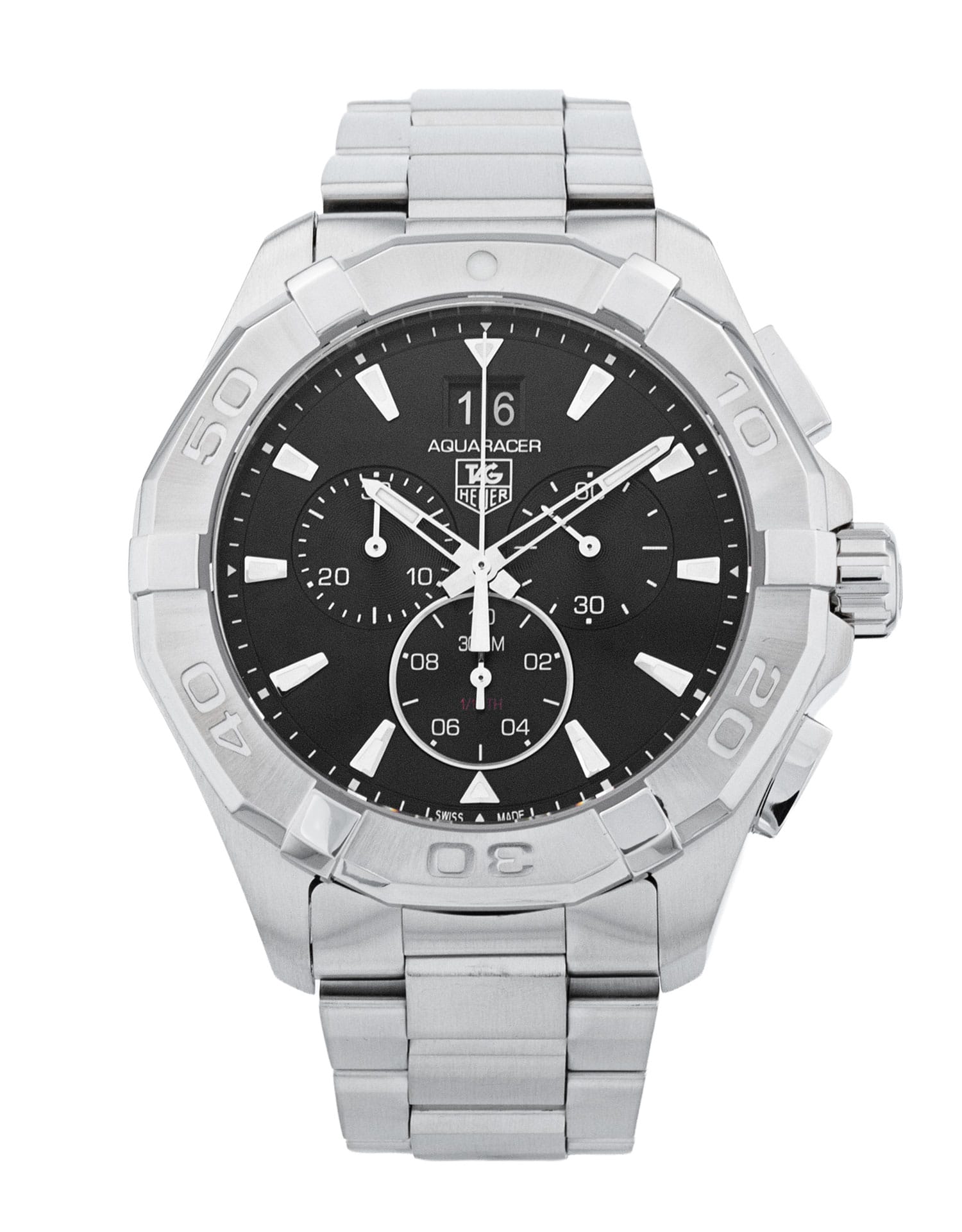 This Tag Heuer Aquaracer CAY1110.BA0925 has a black baton dial and a bracelet strap. This Tag Heuer has undergone a thorough inspection of accuracy, functionality and condition at our Tag Heuer certified service centre to determine the level of reconditioning required to meet our strict standards. It has also been checked against our records to ensure authenticity. All our watches have a 24-month warranty for your peace of mind.