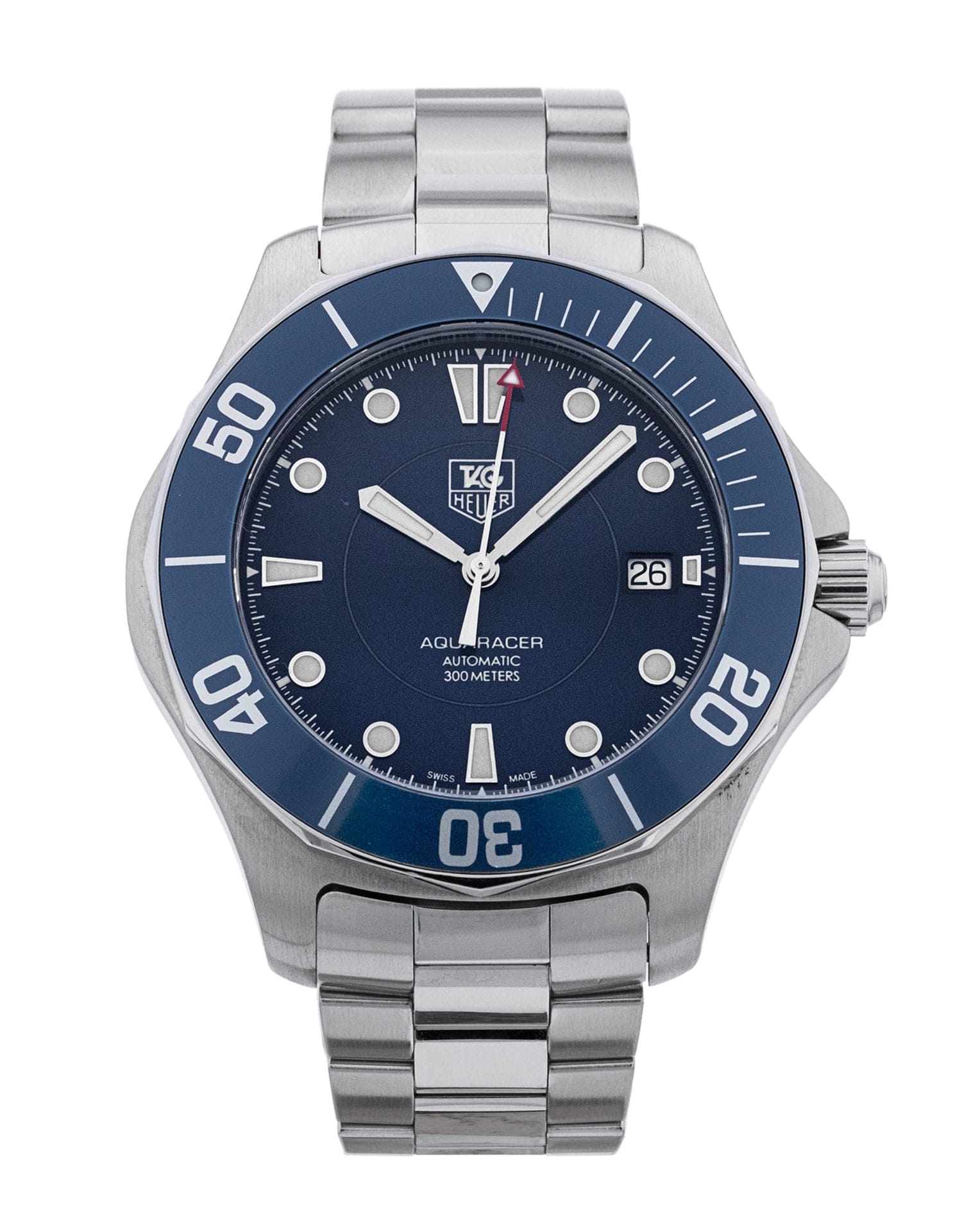 This Tag Heuer Aquaracer WAB2011.BA0803 has a blue baton dial and a bracelet strap. This Tag Heuer has undergone a thorough inspection of accuracy, functionality and condition at our Tag Heuer certified service centre to determine the level of reconditioning required to meet our strict standards. It has also been checked against our records to ensure authenticity. All our watches have a 24-month warranty for your peace of mind.